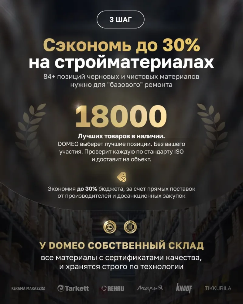 ШАГ 3. Узнайте, закупает ли подрядчик стройматериалы оптом или имеет свой склад — так дешевле на 20-30%