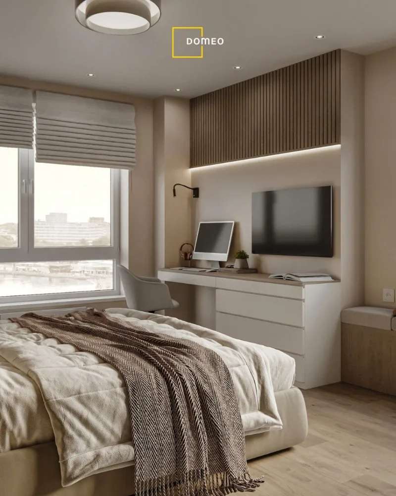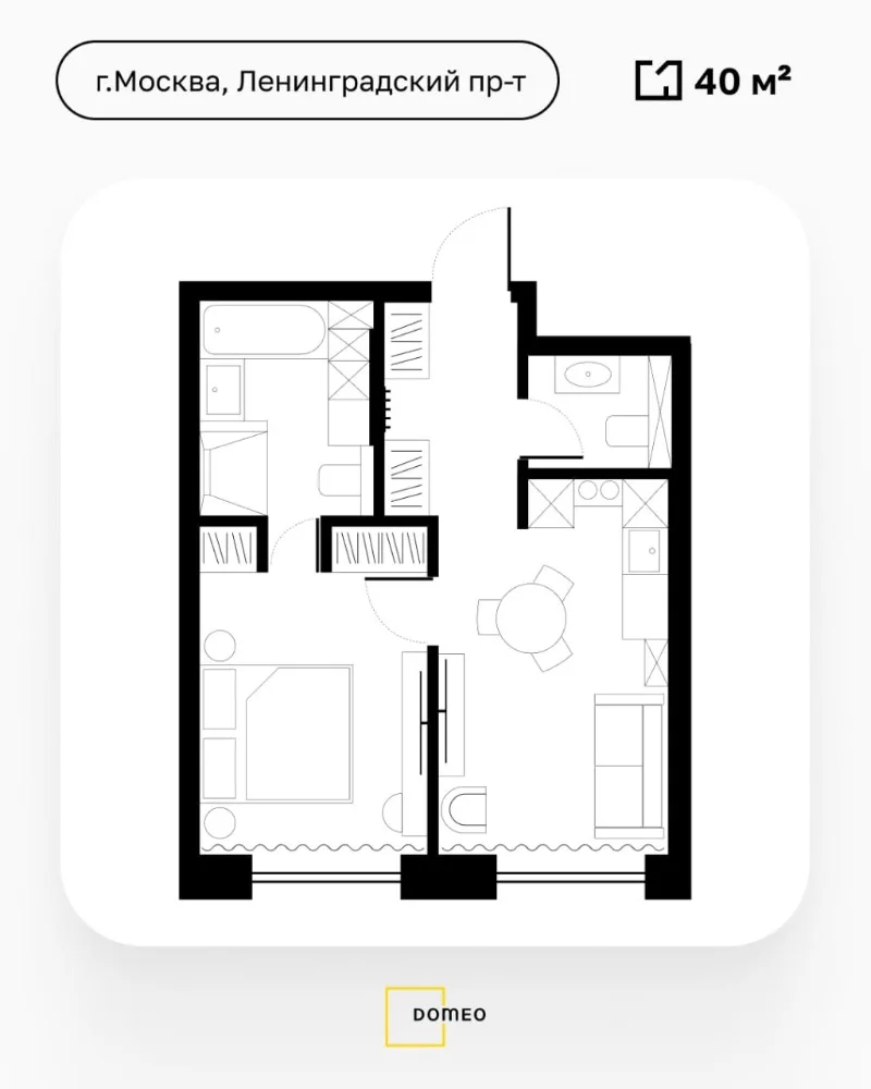 Как решили проблемы? Вместо тесных 40 м² — просторное пространство, где есть место и для сна, и для работы. За счпт грамотной планировки и встроенной мебели освободили до 6 м² полезной площади.