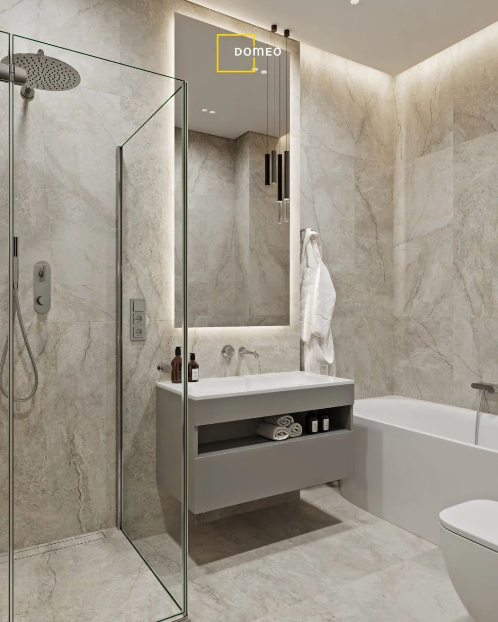 В Domeo подбираем материалы и сантехнику так, чтобы все было практично и не требовало постоянного ухода — от плитки до герметика.