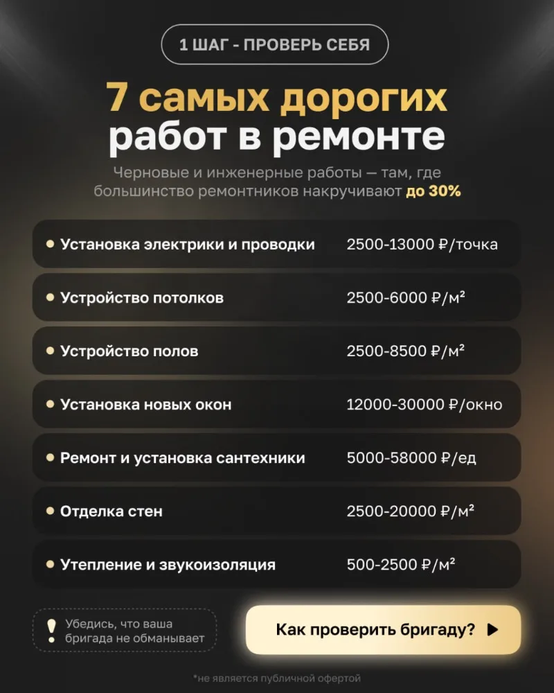 ШАГ 1. Проверьте бригаду по этим 8 самым дорогим работам — здесь накручивают до +30%