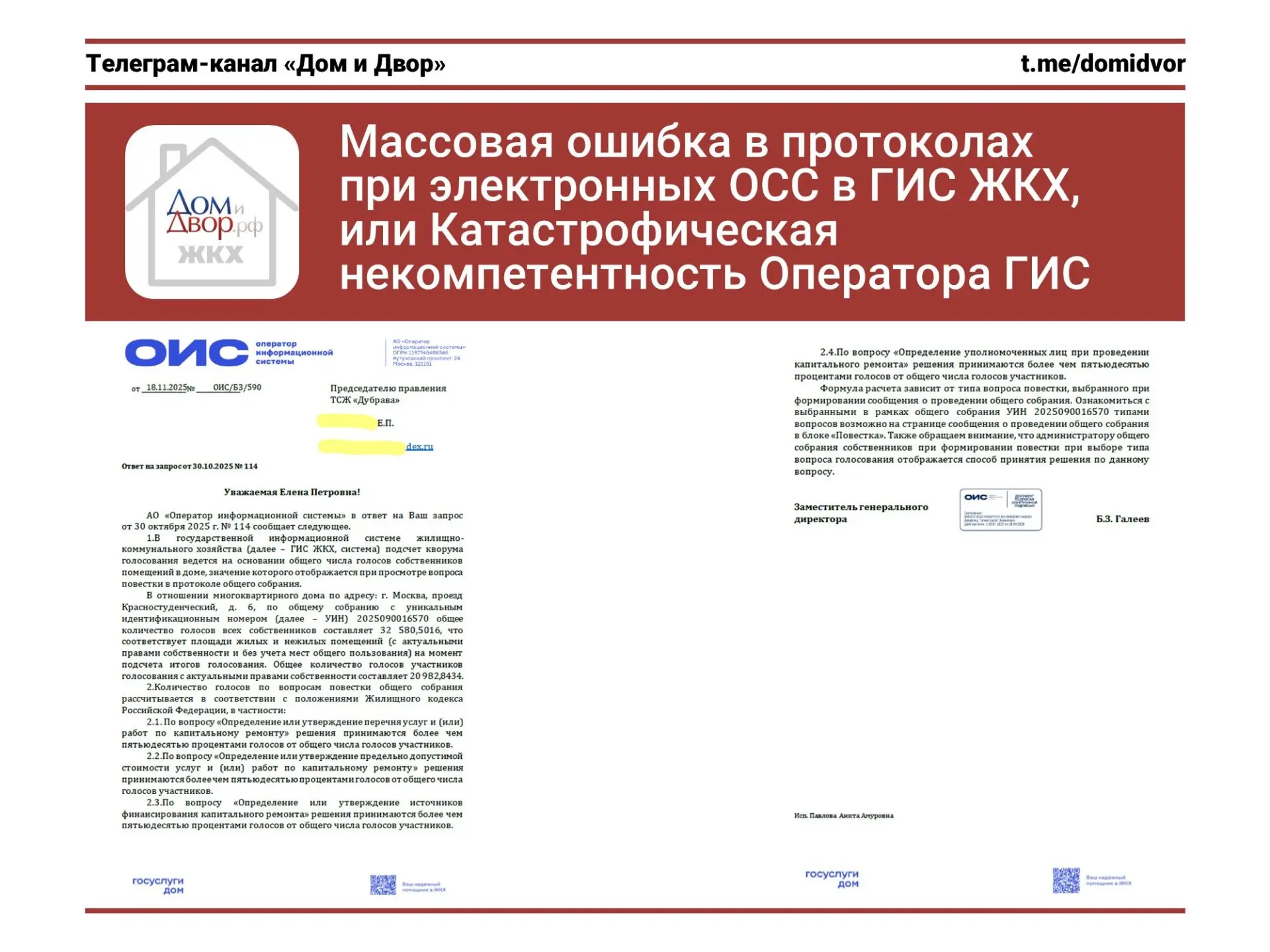 #читателипишут #ГИСЖКХ #ОИС #Минстрой #активныежители #ОСС #ЭОСС #капремонт #цифровизация