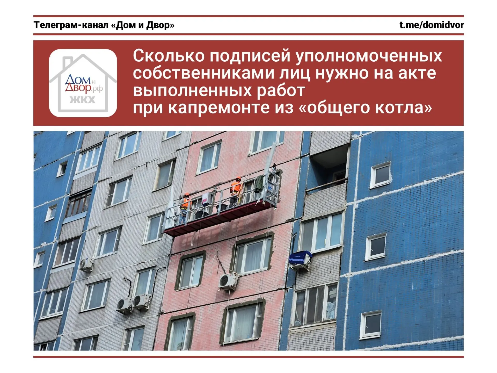 Уважаемые собственники, прошу запомнить: по всем вопросам о проведении капитального ремонта и использовании накопленных средств (https://t.me/domidvor/777)