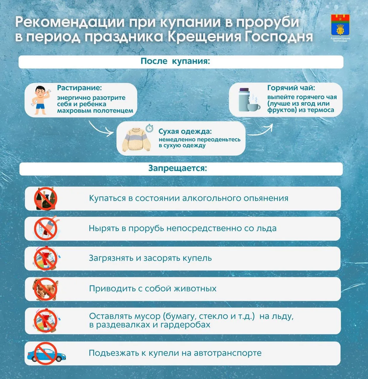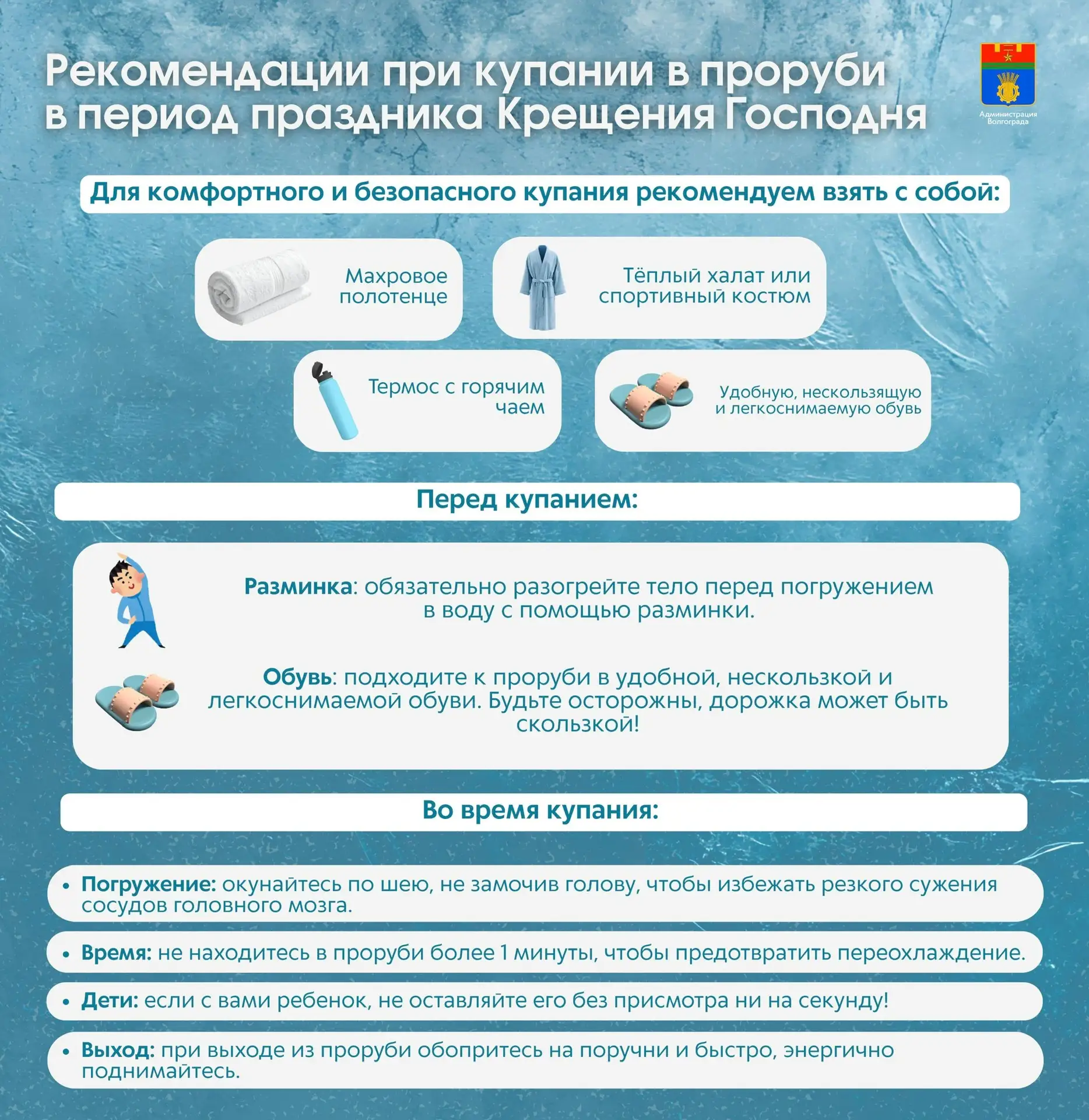 ▶️Муниципальные районные предприятия ЖКХ устанавливают возле каждой купели тёплые палатки для переодевания, чтобы участники могли согреться после выхода из воды и минимизировать риск переохлаждения. Также организуют удобные и безопасные спуски к воде.