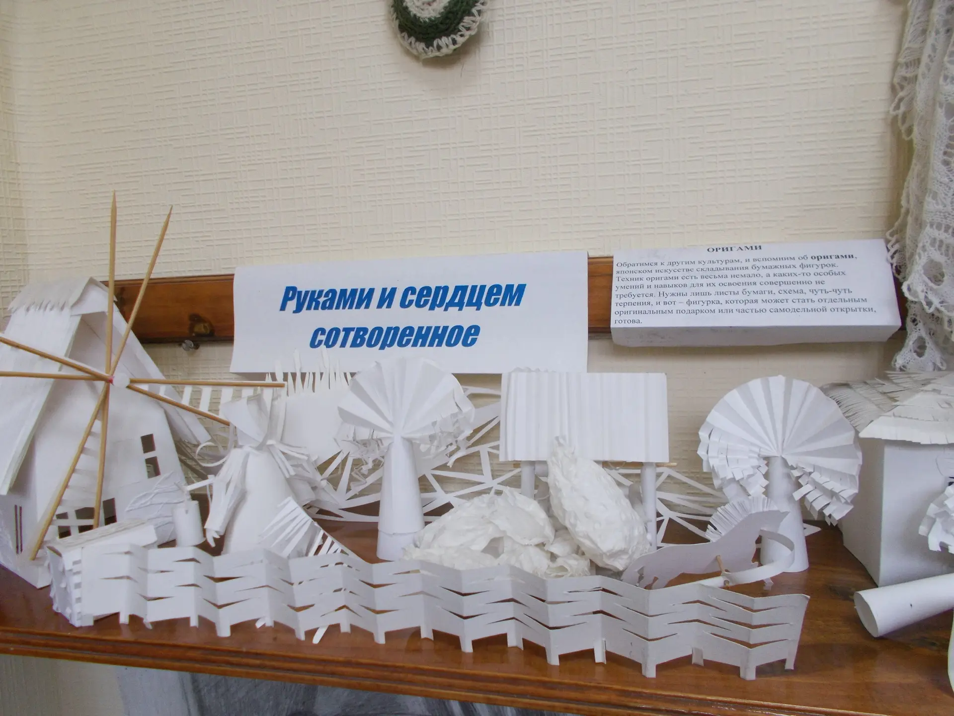 Работа «Руками и сердцем» обучающихся школы искусств «Воскресение» в стиле оригами напоминает кружевное полотно.