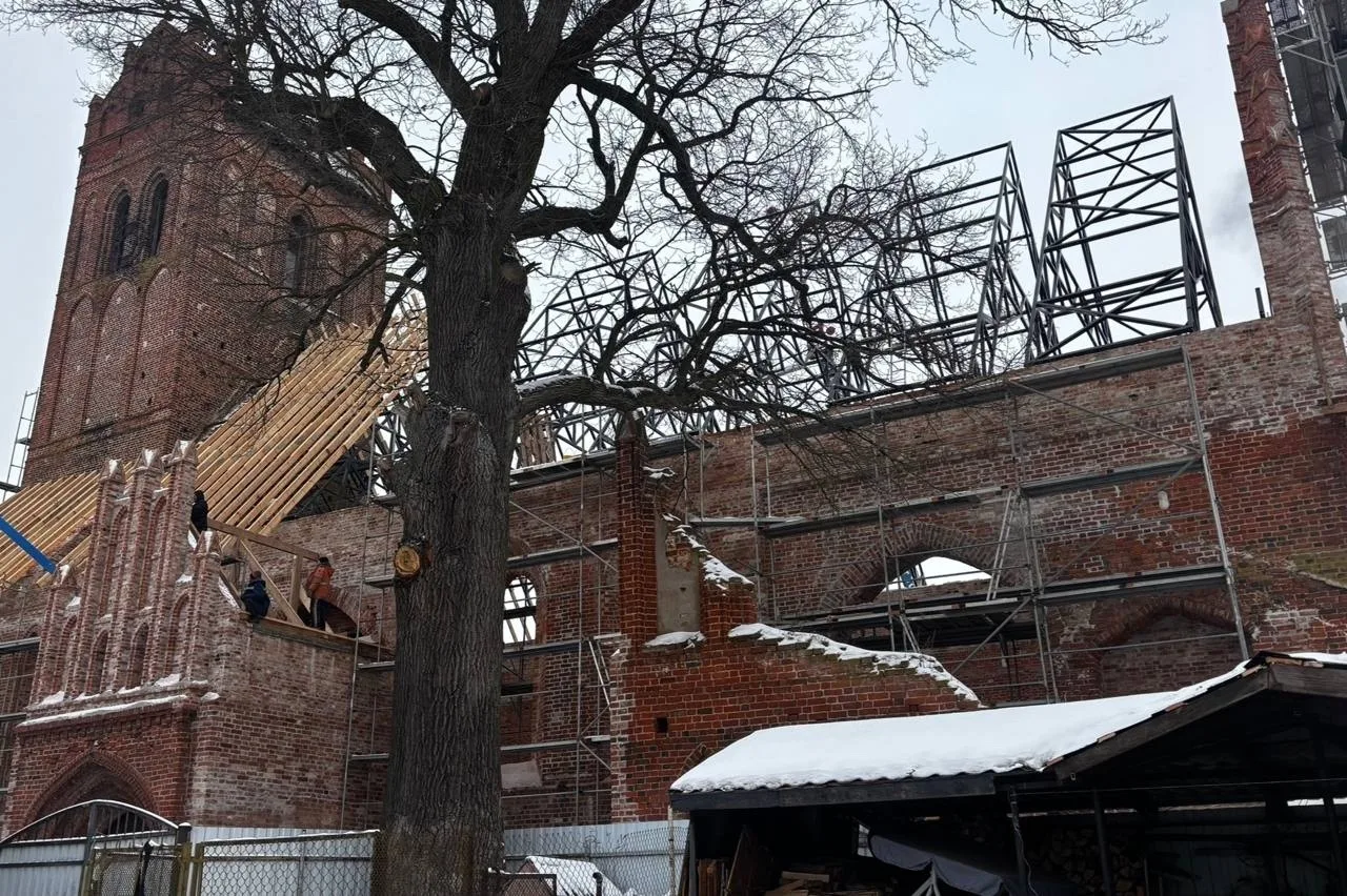 «Реставрационные работы в Железнодорожном вышли на важнейший этап. На объекте „Кирха Гердауэн“ завершена установка последних стропильных ферм. Фронтон здания уже полностью восстановлен и готов к финальной отделке», — говорится в сообщении.
