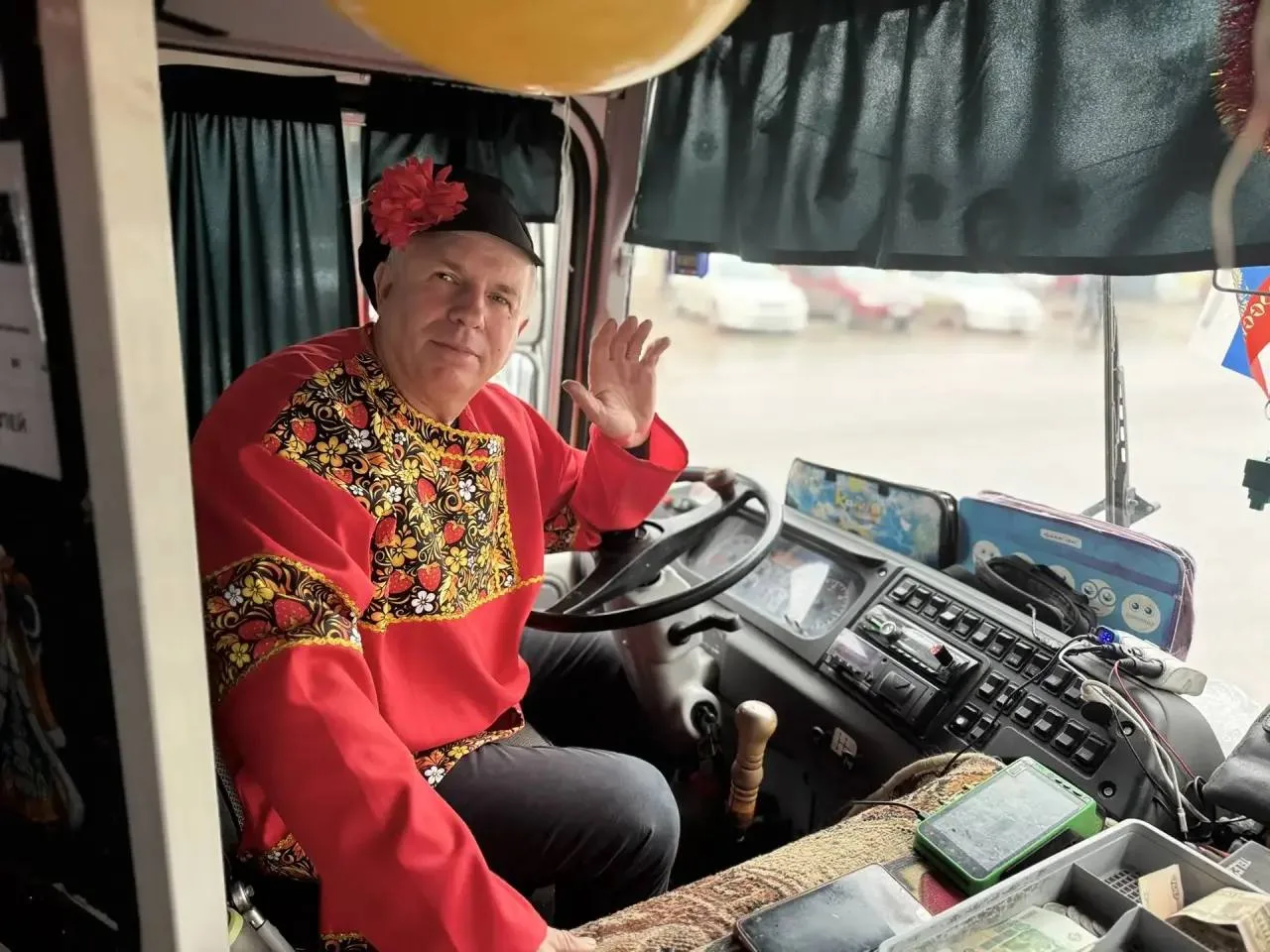 🚌Пассажиры автобуса, следующего из села Стефанидинодар в Азов, были приятно удивлены: водитель Александр Девятил устроил для них настоящий масленичный сюрприз. Александр Девятил сменил привычную одежду на русский народный костюм и украсил салон связками румяных бубликов и разноцветными воздушными шарами, создав настоящую атмосферу народного гулянья. Об этом рассказали в администрации Азовского района.