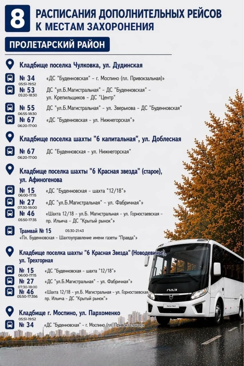 🚌 В Донецке организовали дополнительные рейсы для подвоза людей к кладбищам в поминальное воскресенье (19 апреля)
