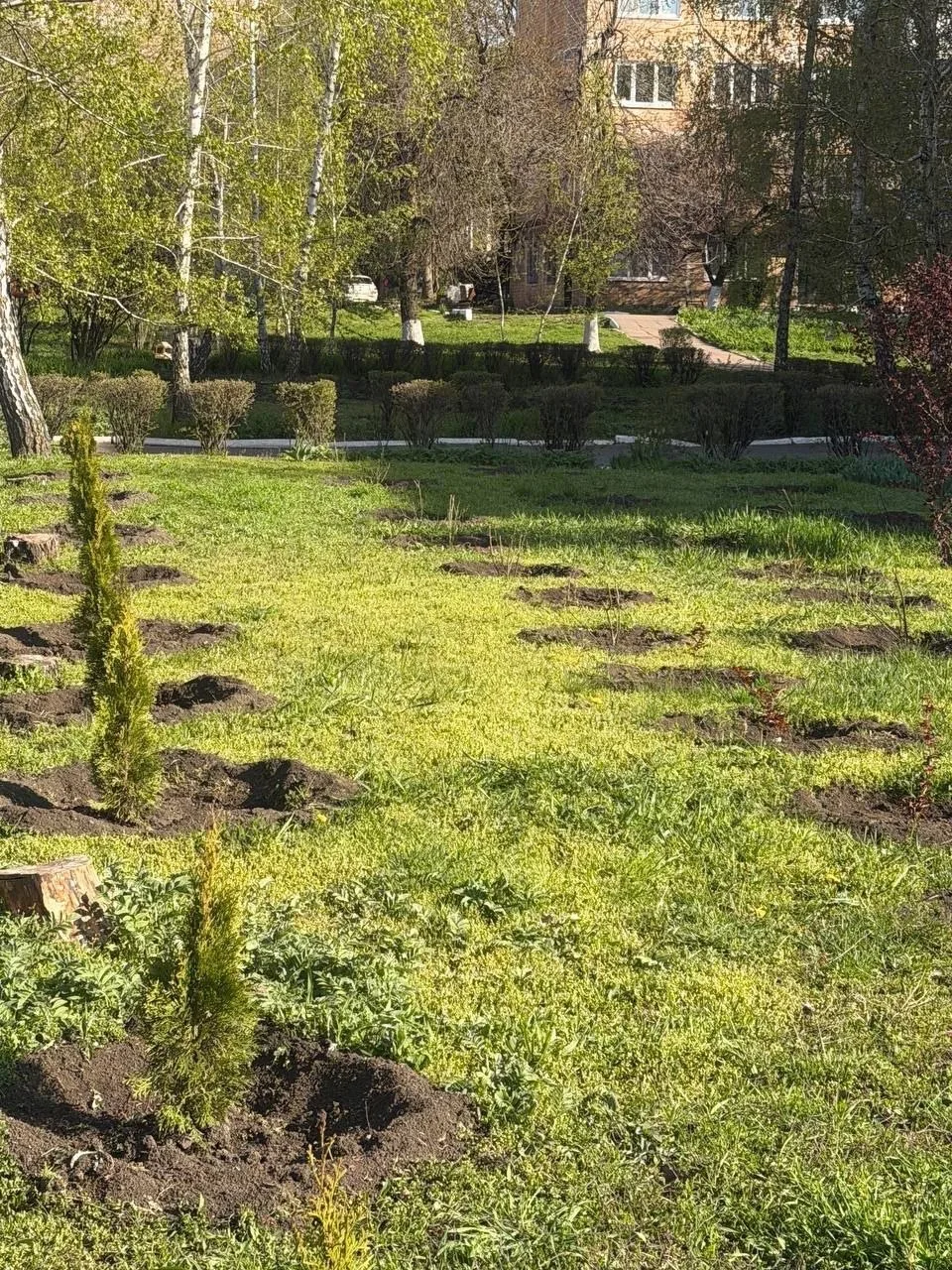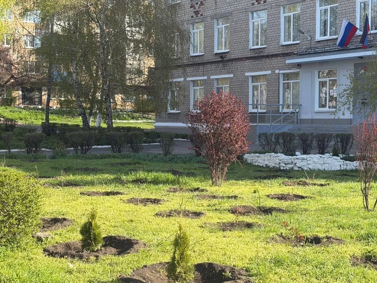 🌹 Возле школы №46 в рамках "Чистого четверга" высадили розы и туи