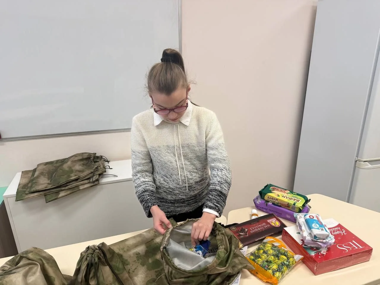 К наполнению вещмешков активно подключился 5 класс: ребята собрали всё самое необходимое, включая теплую одежду, продукты питания и гигиенические принадлежности. Вместе с педагогами школьники аккуратно упаковали груз, чтобы он дошел до адресатов в целости и сохранности.