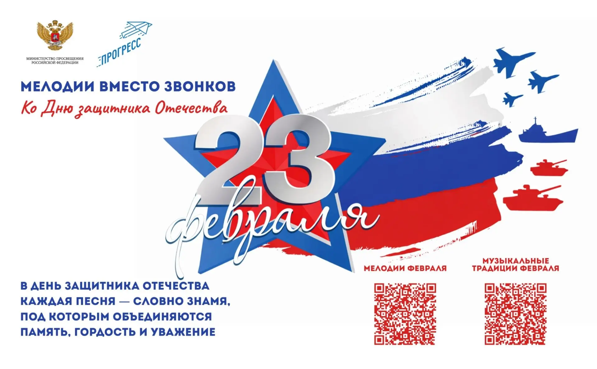 🎵 В феврале в рамках Всероссийского проекта «Мелодии вместо звонков» стандартные звонки в школах заменят музыкальные композиции, посвященные Дню защитника Отечества.