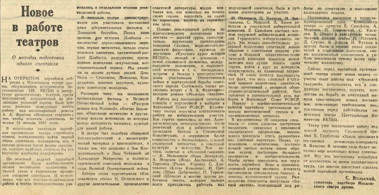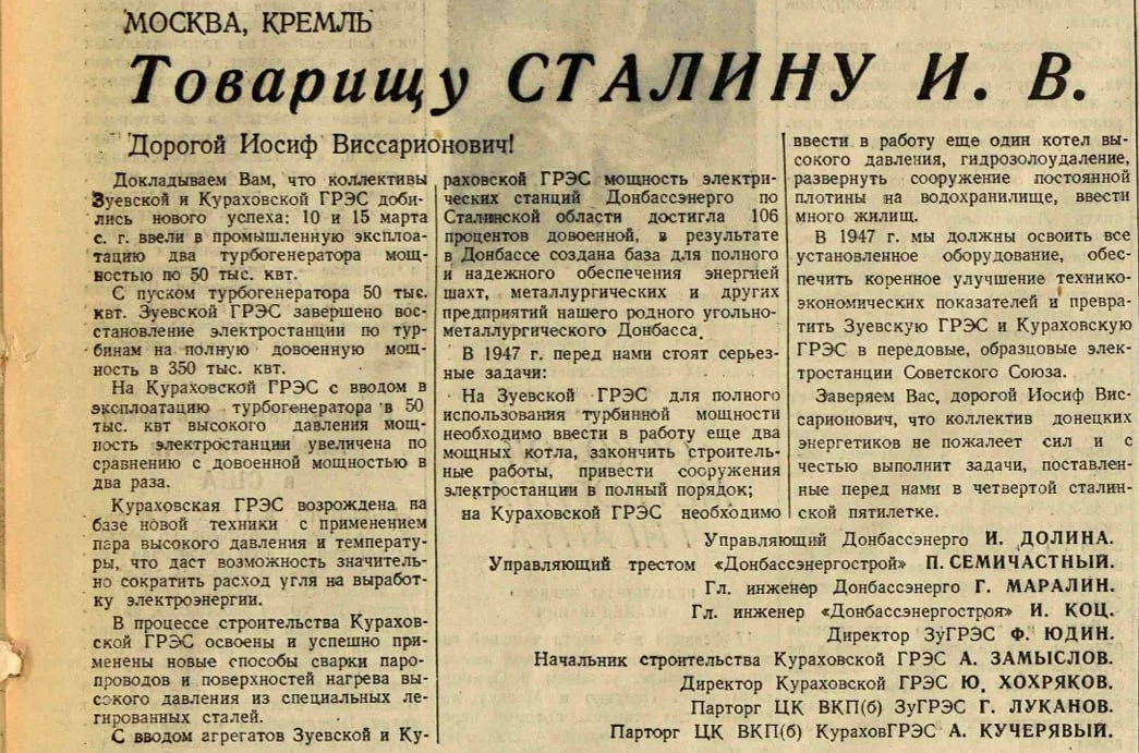 В 1947 году в передовые вышли ЗУГРЭС и Кураховская ТЭЦ. В связи с чем о них активно писали СМИ. Готовился к работе таксофон погоды. Историки изучали Москву в канун 800 летия. Парторг рапортовал о театральной работе, продолжались заседания совещания министров , бессмысленные и беспощадные, блокировки при Сталине ну и немного рекламы #история