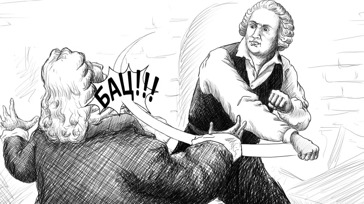 «Адъюнкт Ломоносов 26-го числа сентября 1742 ввечеру в моей квартире учинил такое насильство, что он не токмо моих гостей подозрительными людьми объявил, но и одного из них до полусмерти прибил».
