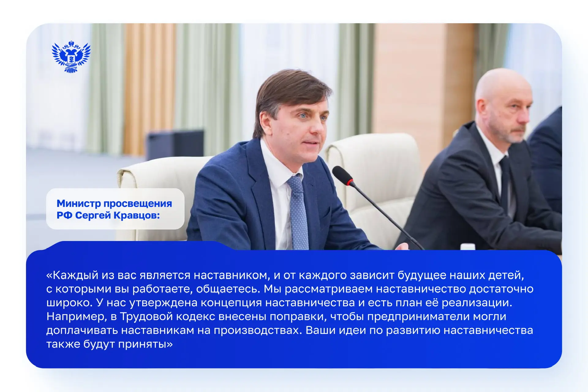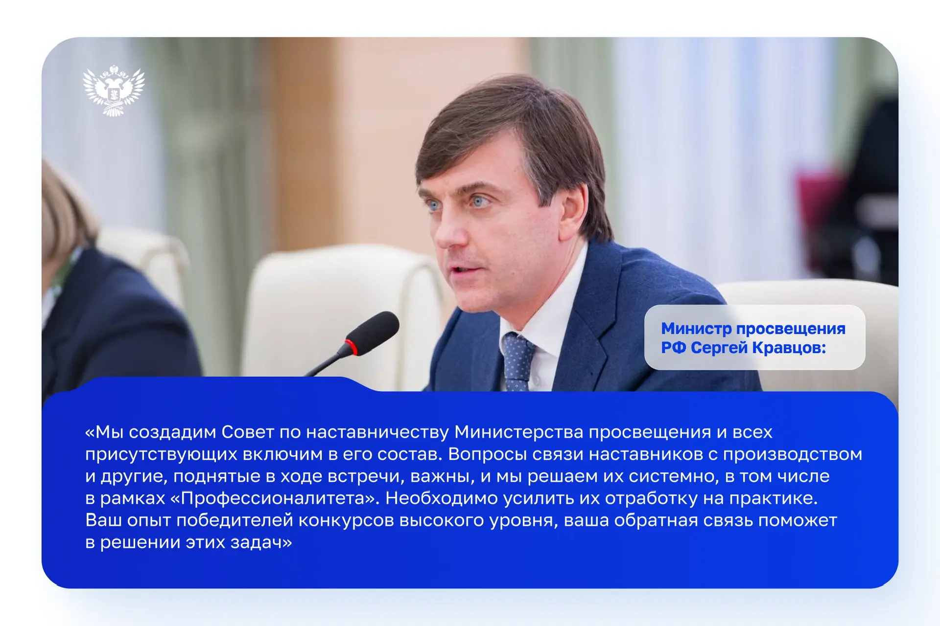 Поздравление Министра просвещения Российской Федерации Сергея Кравцова с Днем наставника