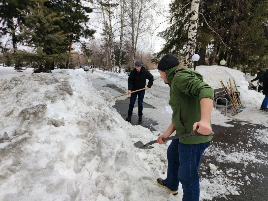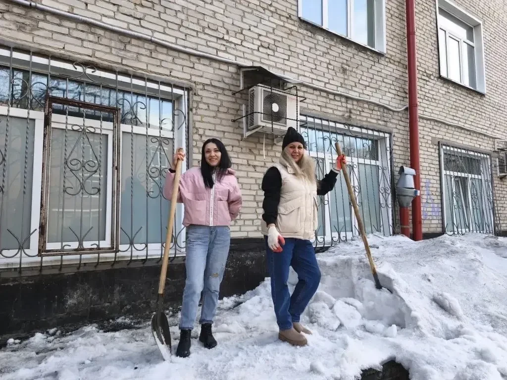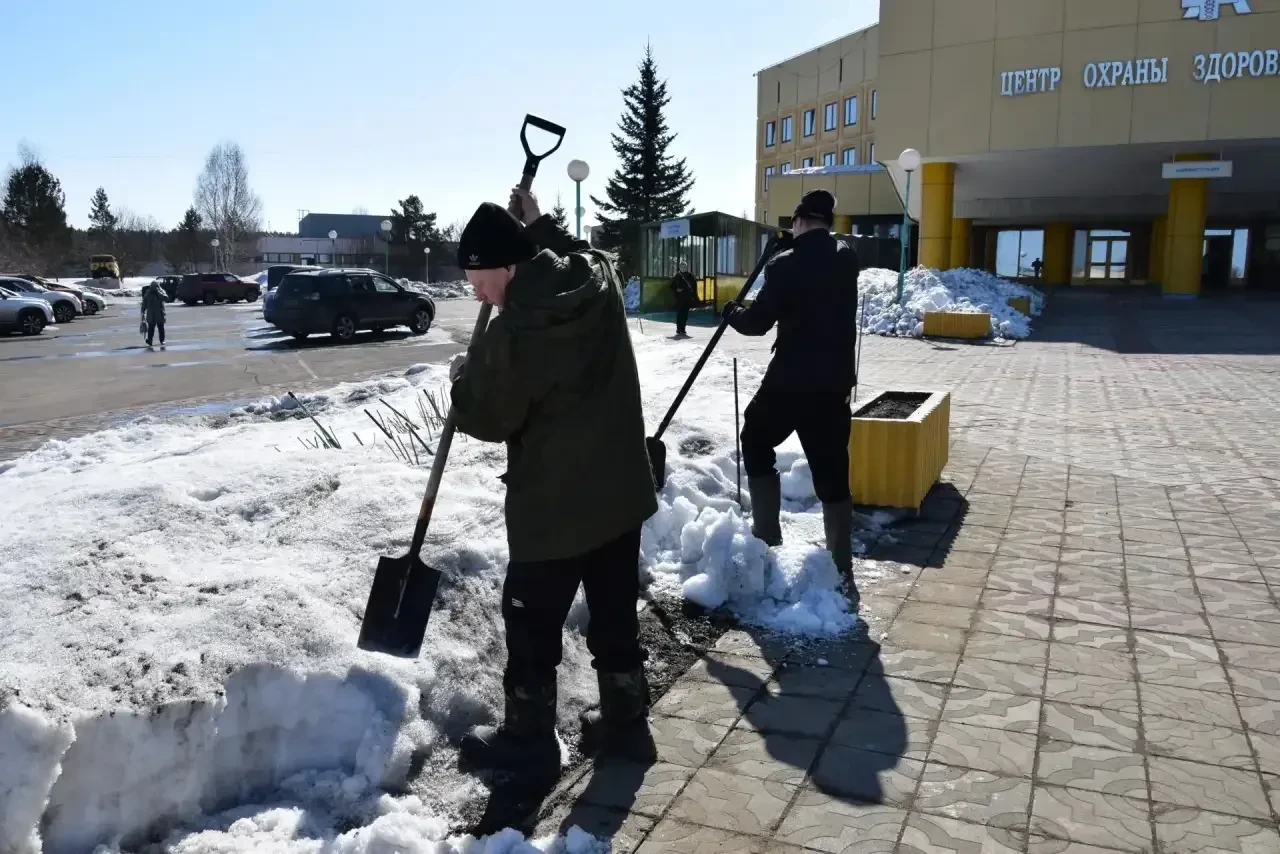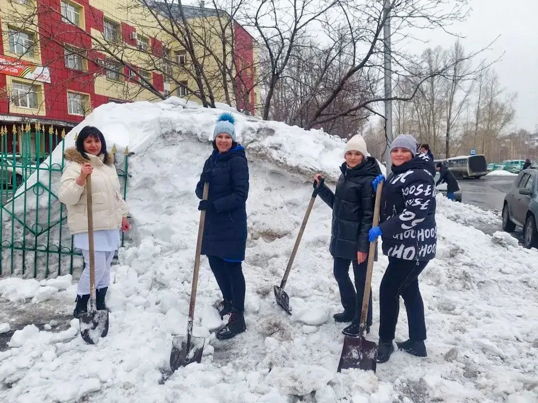 Сотрудники медицинских организаций Кузбасса вышли на субботник, чтобы освободить от снега прилегающие территории.