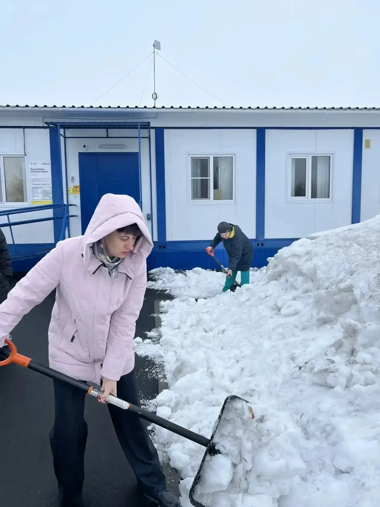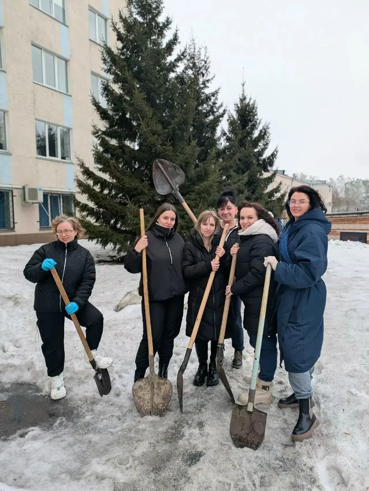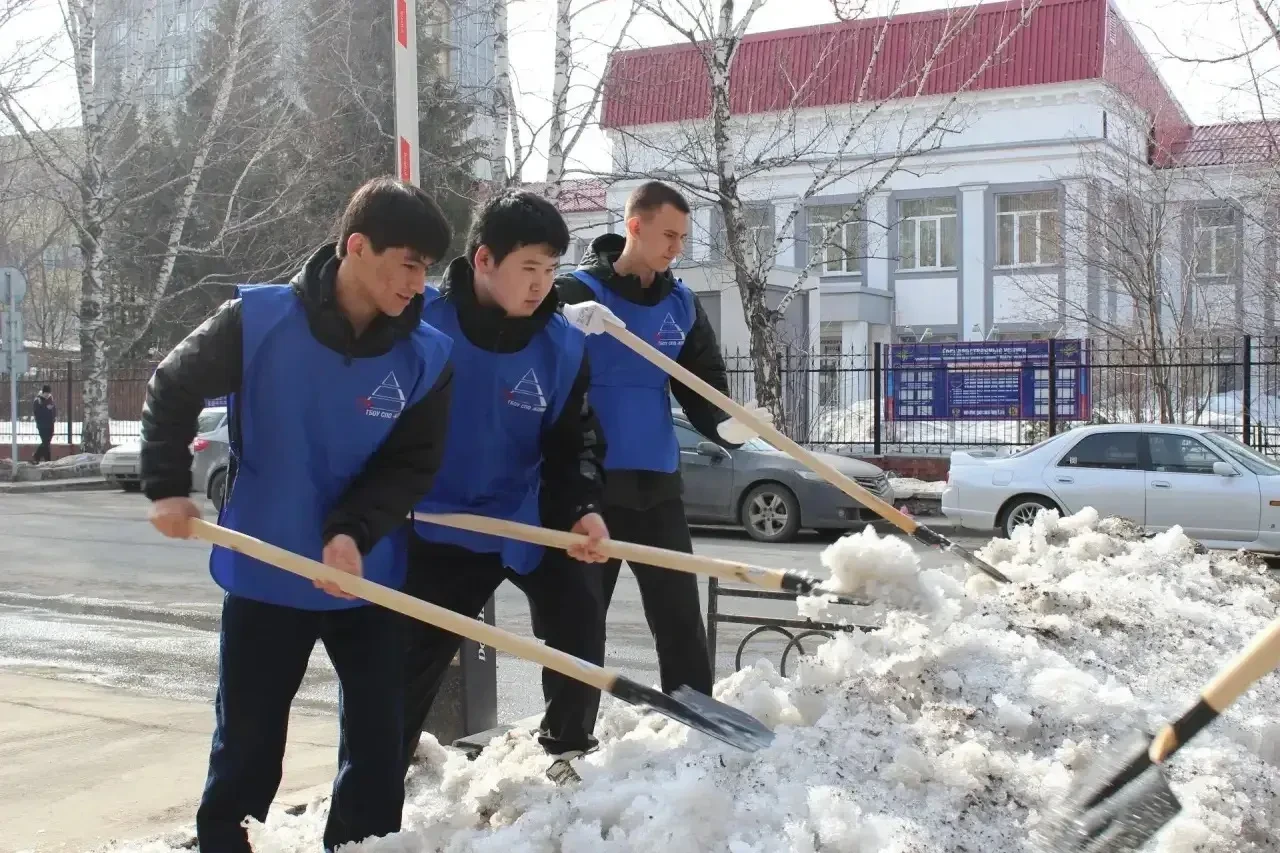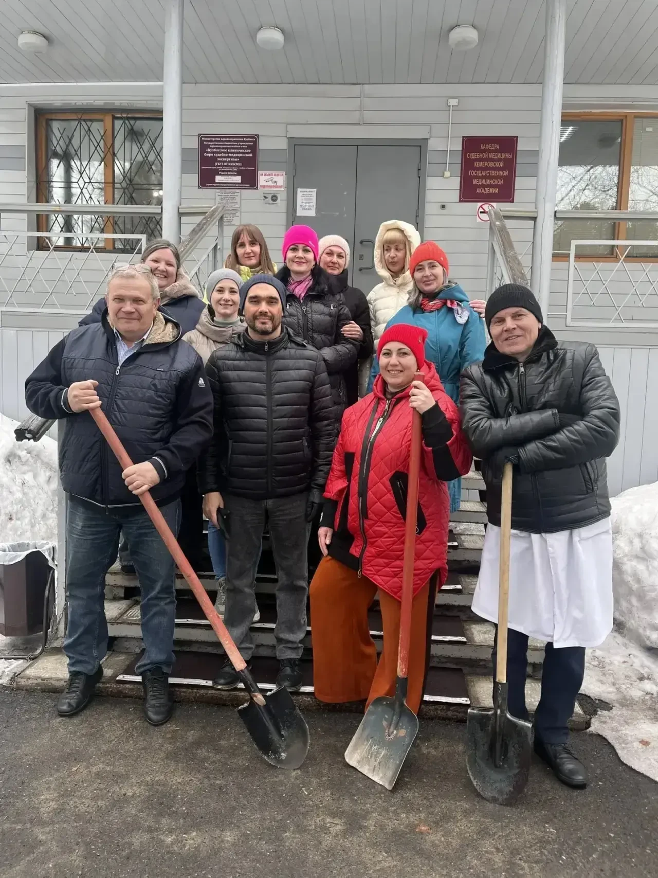 Сотрудники медицинских организаций Кузбасса вышли на субботник, чтобы освободить от снега прилегающие территории.