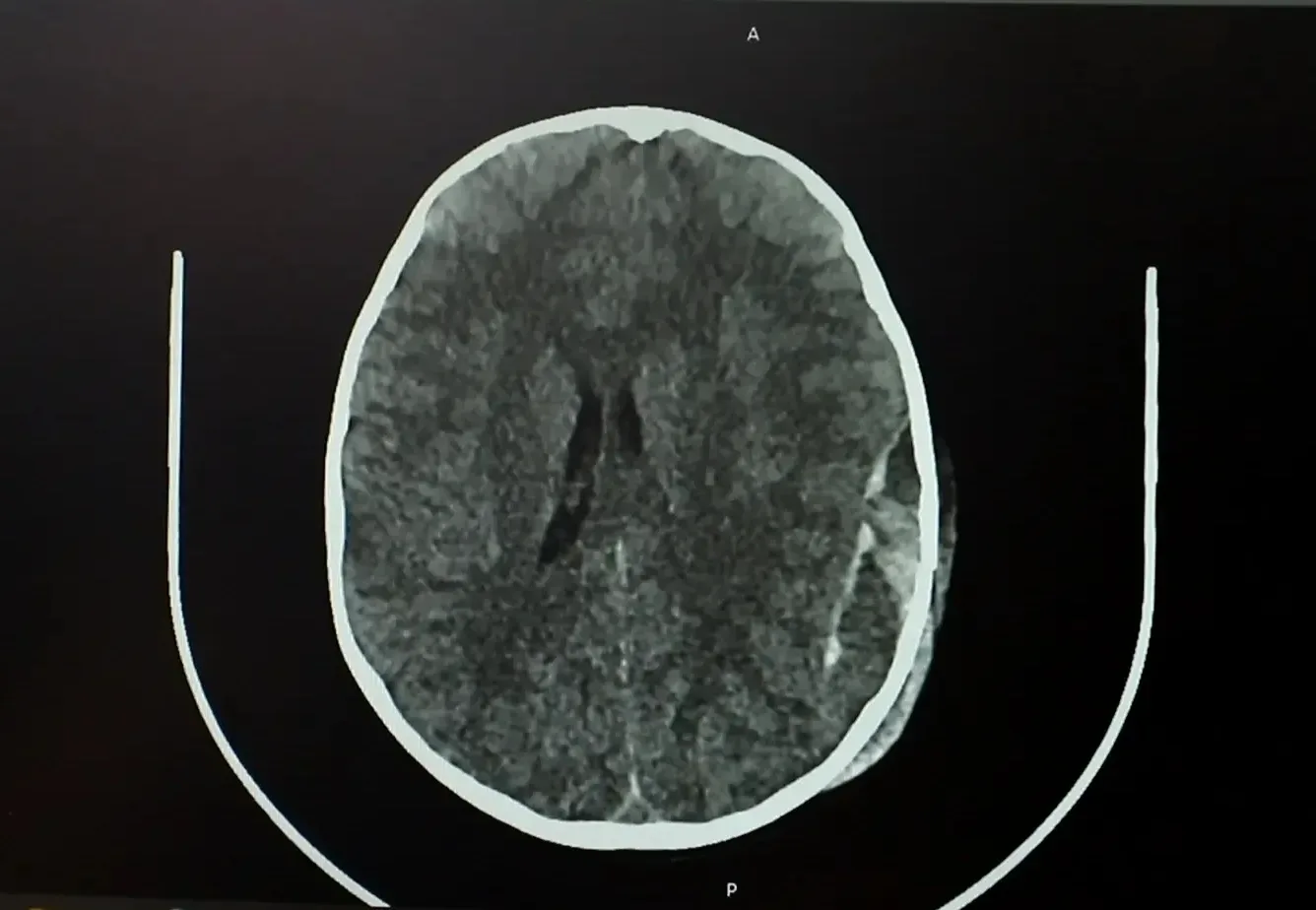 Видимых повреждений головы у ребенка не было, но на следующий день он стал отказываться от еды, поэтому родители повезли его в больницу. МСКТ и рентген-исследование выявили перелом костей черепа и острую эпидуральную гематому.