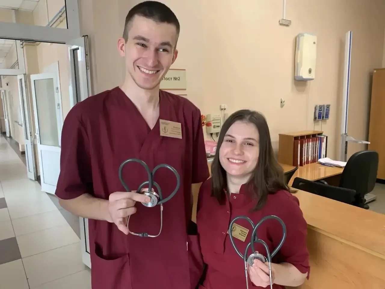 Медицинский брат Максим Жижкеев и медсестра Ксения Бибикова – молодые специалисты кардиологического отделения N 2 Новокузнецкой городской клинической больницы N 1 им. Г.П. Курбатова.