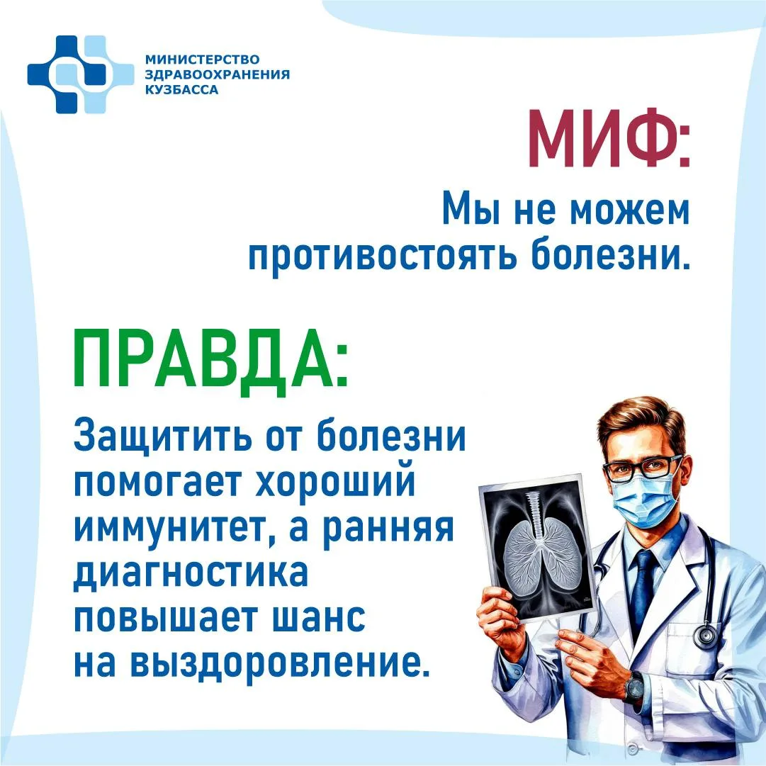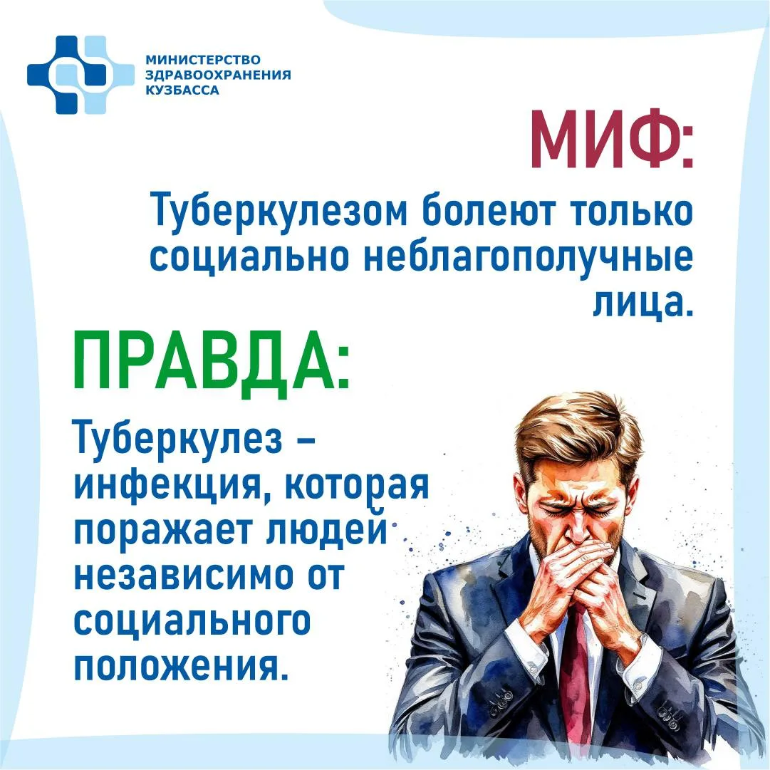📍 Туберкулез окружен множеством мифов и страхов. Часто именно незнание заставляет людей избегать тех, кто столкнулся с этим диагнозом, и испытывать необоснованную тревогу за свое здоровье. Разберем самые популярные убеждения!