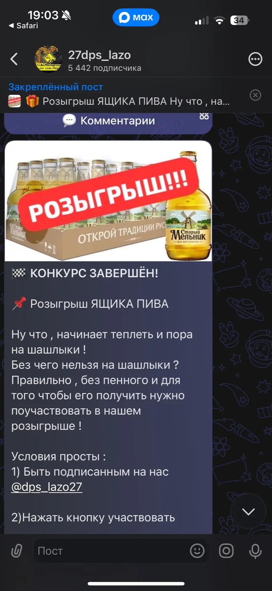 Напоминаем , что у нас в канале в мах проходит два розыгрыша , отправь друзьям , пусть тоже испытают удачу )