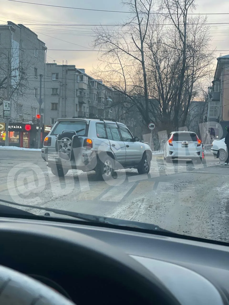 Сегодня на парковке Усурийского бульвара 2, в 11:16 была притёрта Киа Сид в передний бампер автомобилем Тойота крузер В767ВВ 27.