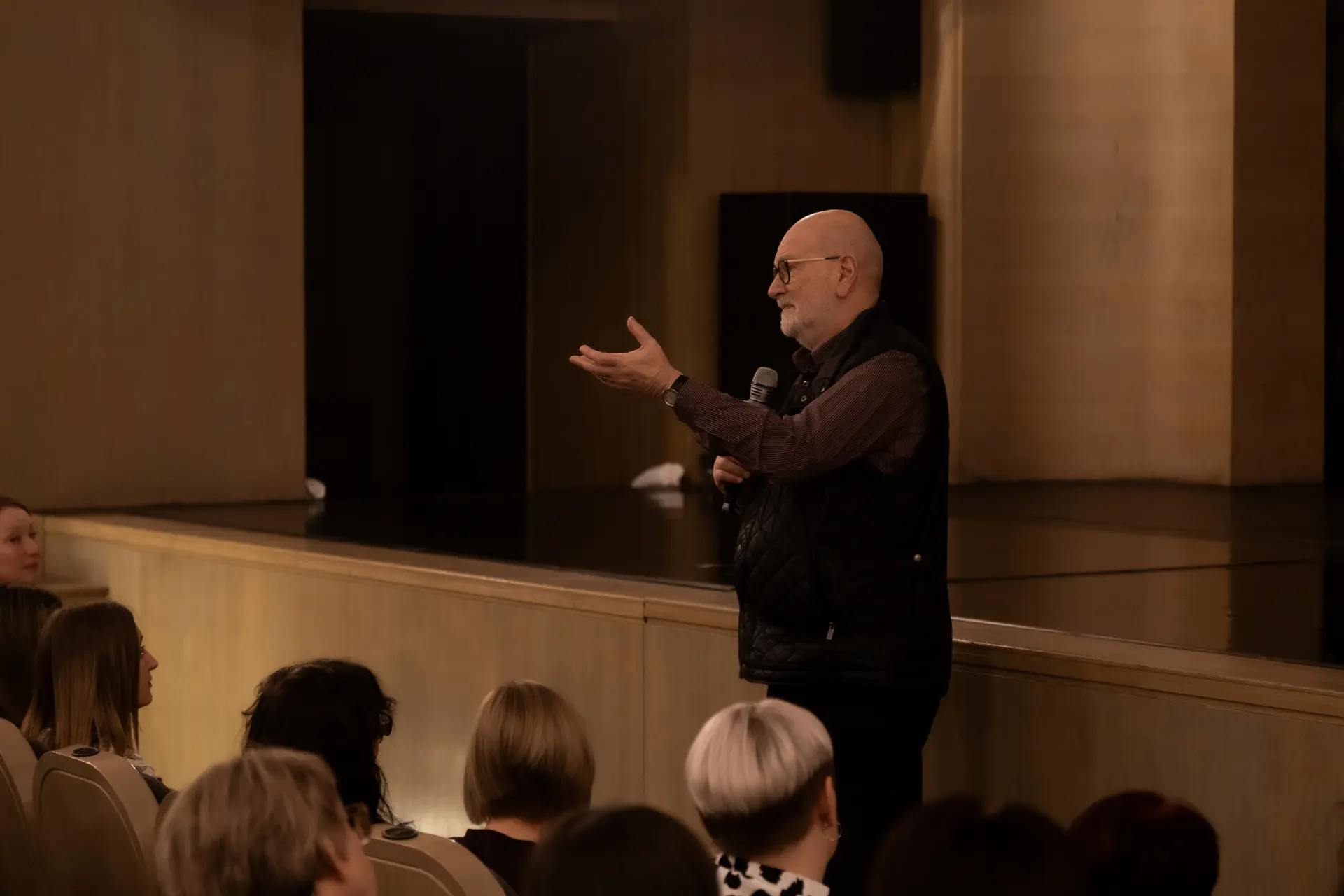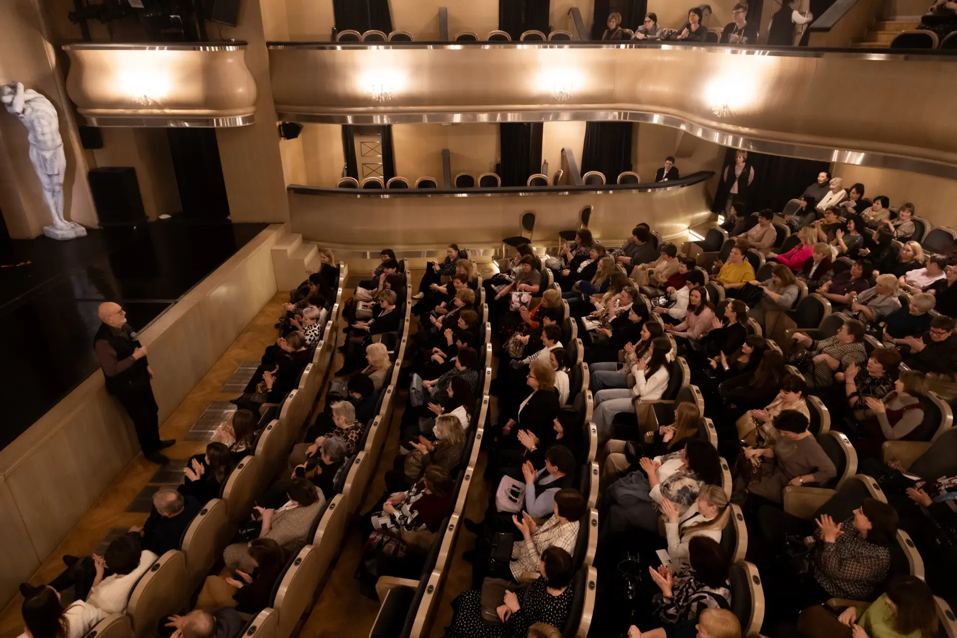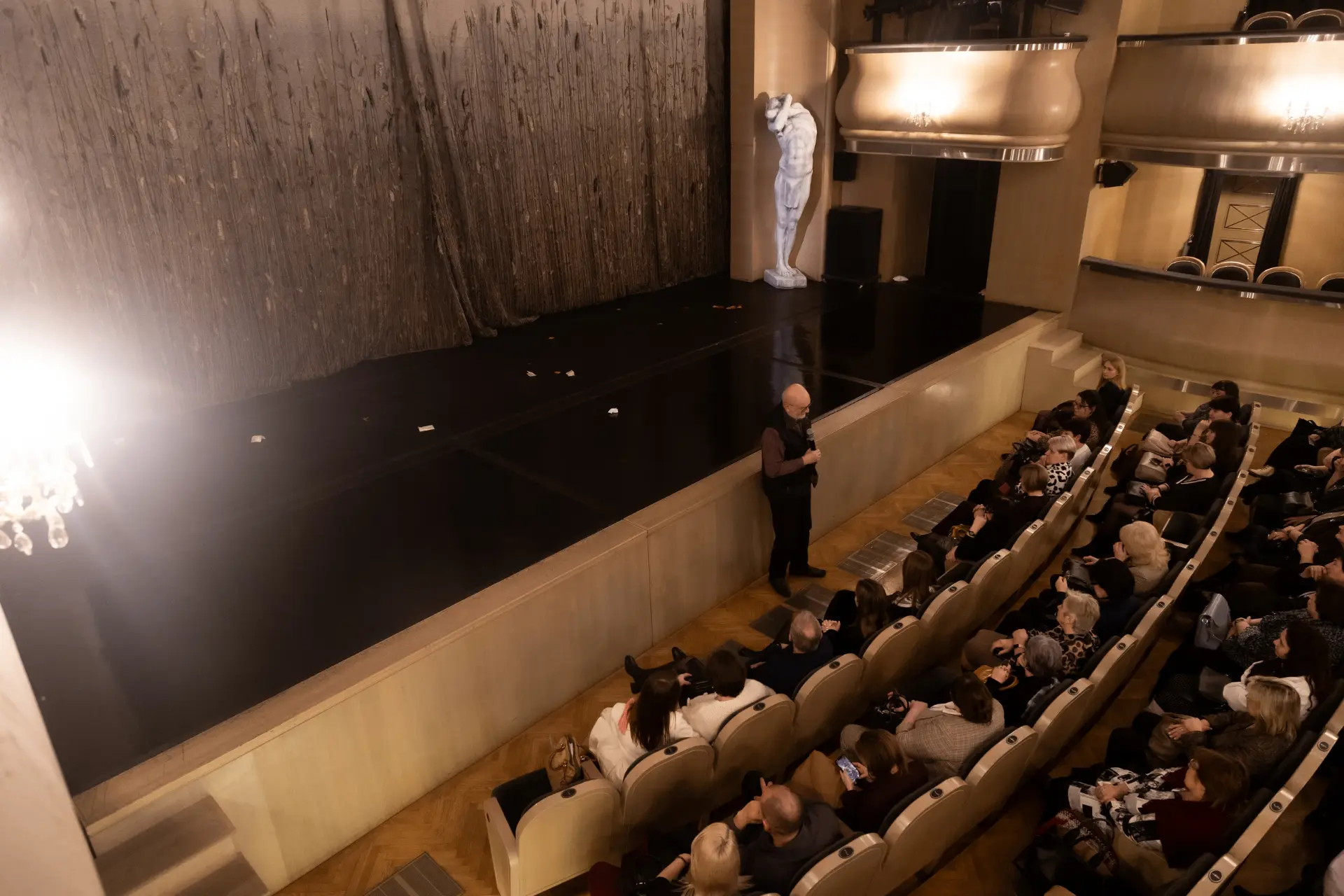 После показа Владимир Петров ответил на вопросы о постановке и провёл мастер-класс. В ходе своего выступления Владимир Сергеевич обсудил ряд актуальных тем: