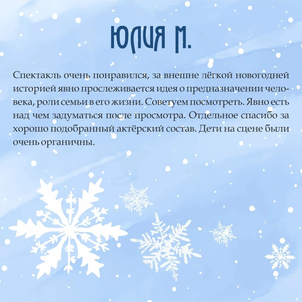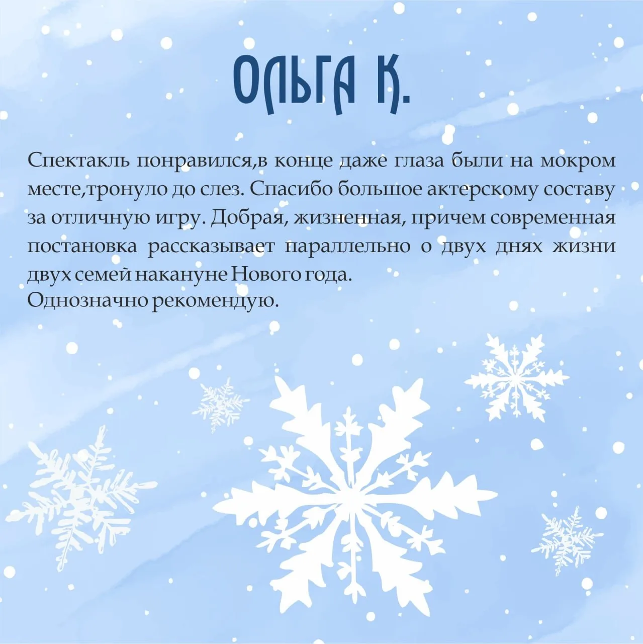 Спектакль «Ночь перед Рождеством», заявленный на 28 декабря (воскресенье) в 18:00, переносится на 30 декабря (вторник) в ❗19:00❗.