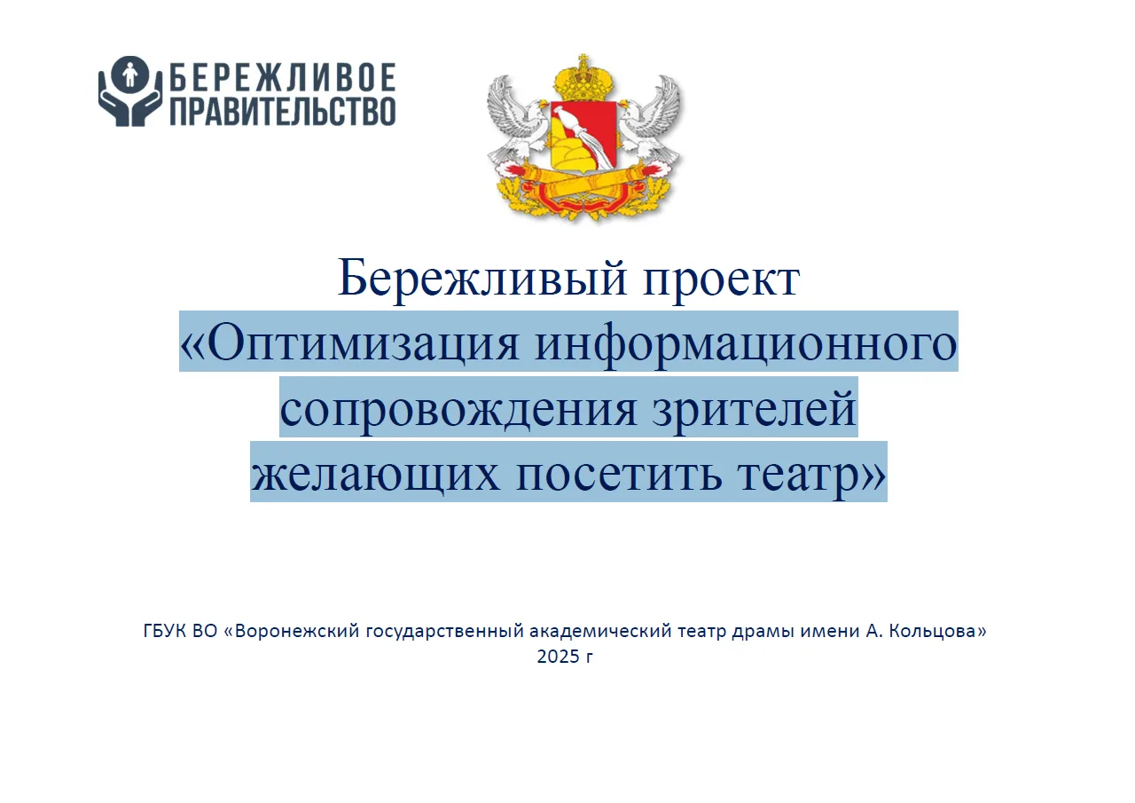 В 2025 году сотрудники Воронежского государственного академического театра драмы им. А. Кольцова реализовали бережливый проект «Оптимизация информационного сопровождения зрителей, желающих посетить театр».