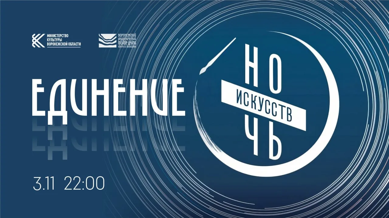 Любимые артисты удивят новыми амплуа, любимые произведения порадуют новым исполнением лучших фрагментов, будут картины и видео, много песен и интересных бесед – будет Ночь Искусств! Частью мероприятия станет выставка работ учащихся Воронежского художественного училища им. Н. Н. Ге.