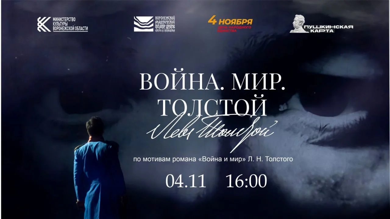 Показ спектакля «Война. Мир. Толстой» приурочен ко Дню народного единства. 4 ноября отмечается подлинное единство общества – солидарность, рожденная в тяжелые годы и преодолевшая внутренние противоречия.