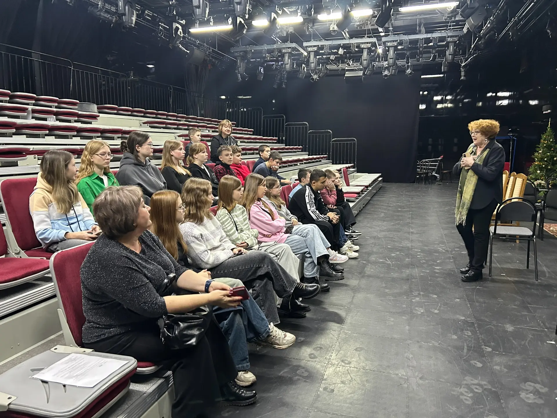 Десятиклассники остались довольны спектаклем и обязательно обсудят увиденное с учителем. После показа сфотографироваться и пообщаться с ребятами вышел режиссер спектакля, заслуженный деятель искусств России и художественный руководитель нашего театра Владимир Петров.