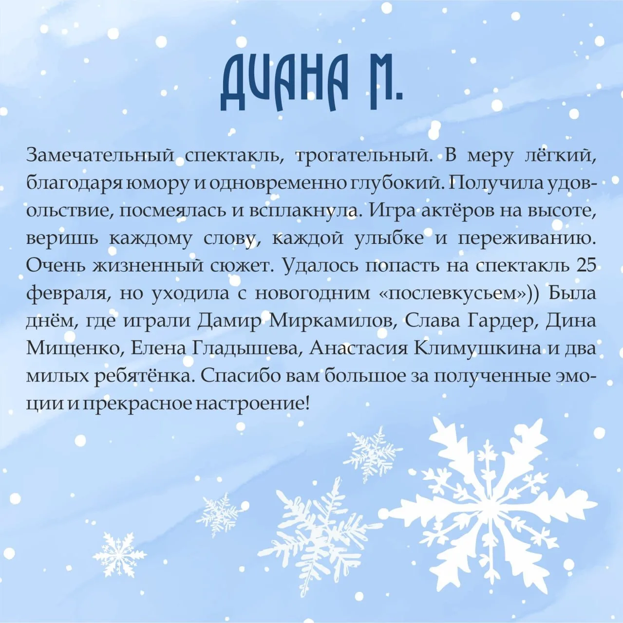 Увидеть Татьяну Егорову на сцене театра можно будет сегодня в роли Насти в спектакле «Метель» по пьесе В. Сигарева ❄