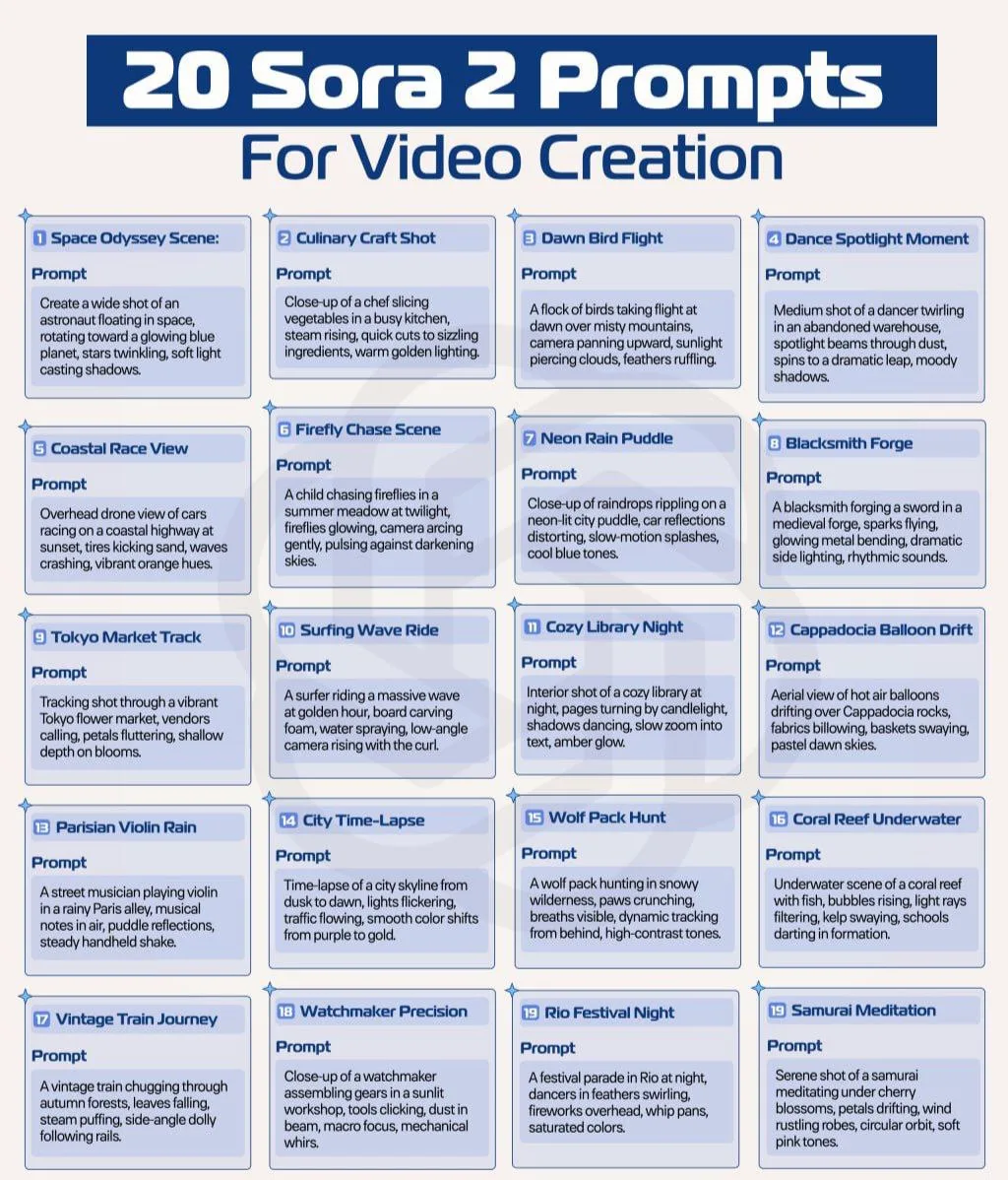 На случай, когда хотите сгенерировать ролик, но не знаете, что написать — держите подборку атмосферных промптов, которые запускают Sora 2 в режим «хорошей анимационной сцены».