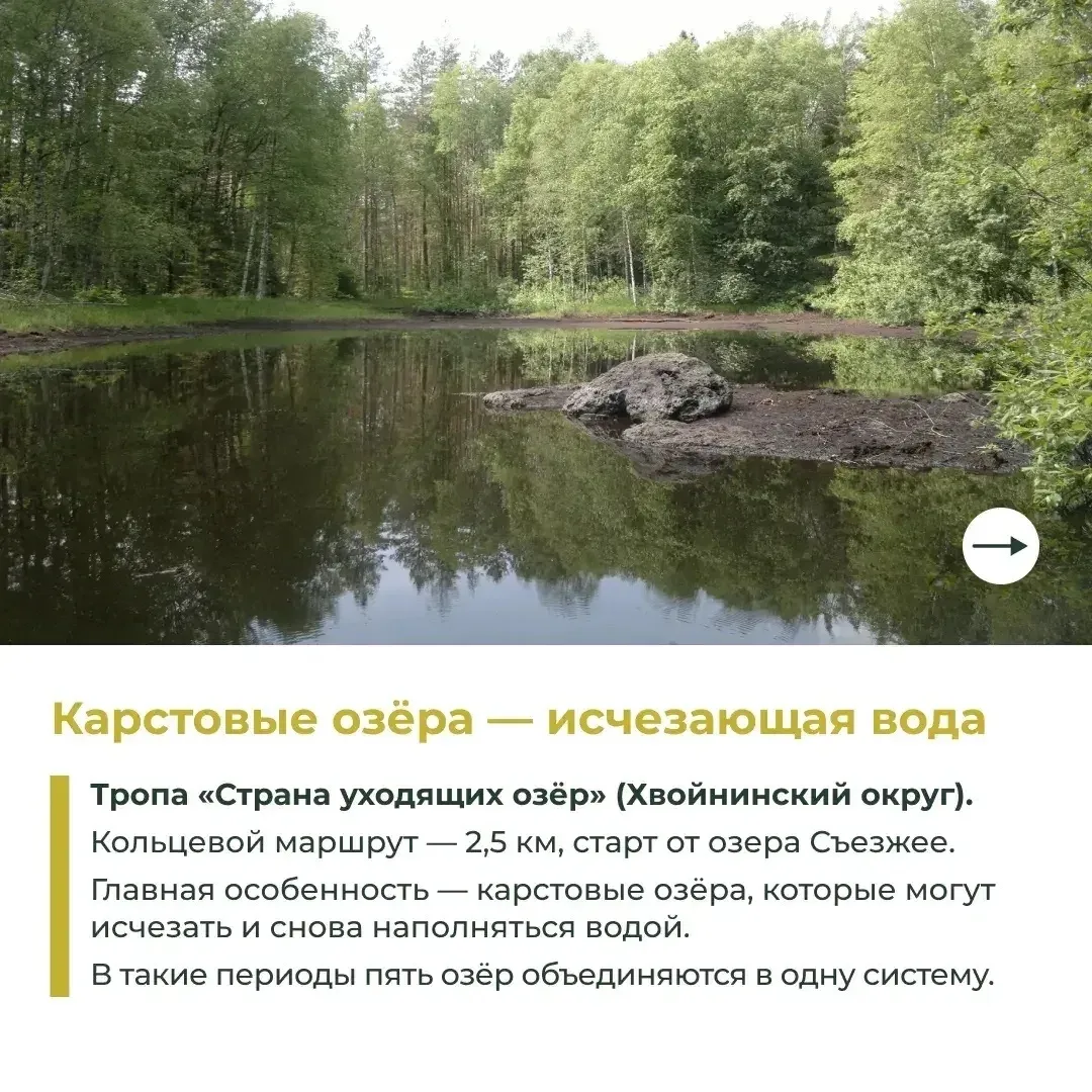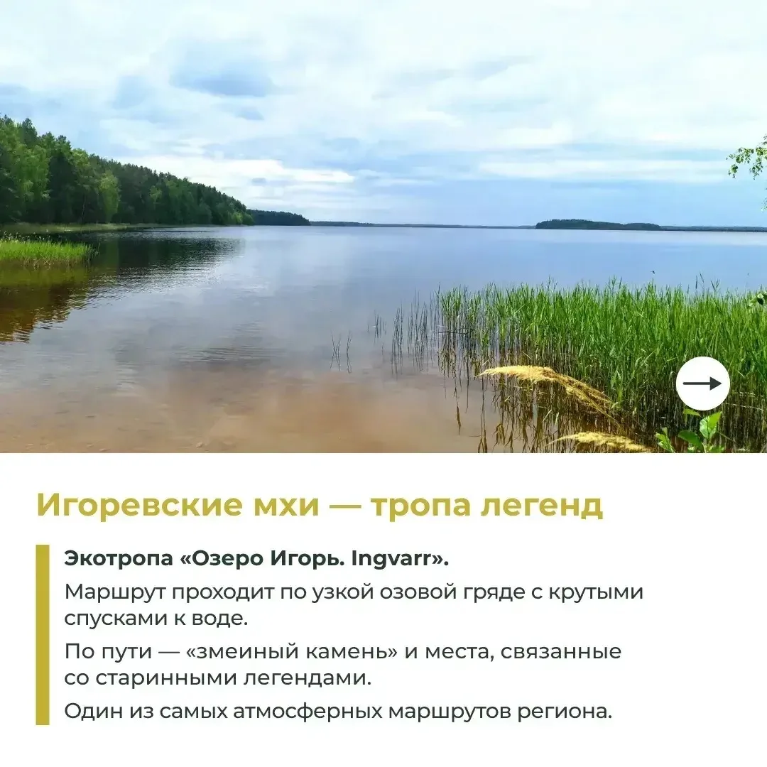 В государственном природном заказнике «Карстовые озёра» Хвойнинского округа несколько лет работает проект «Тропа «Страна уходящих озёр». В округе 10 лет назад был создан заказник «Игоревские мхи». Сейчас там открыта экологическая тропа «Озеро Игорь. Ingvarr».