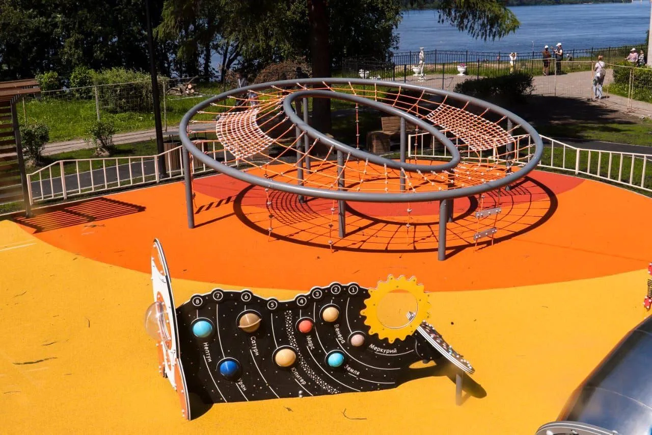 Новая детская площадка в Кировске — просто космос. Здесь дети знакомятся с планетами, механикой и музыкальными инструментами: от барабанов до металлофона. Рядом — горки и мини-скалодром, закольцованная велодорожка.