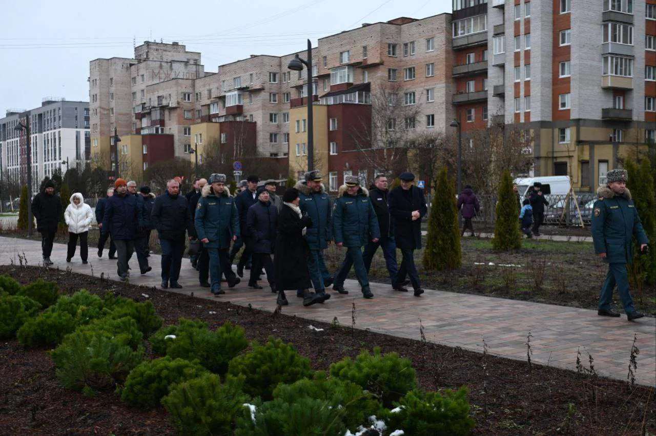 Благоустроенное пространство с тематическими детскими площадками, зонами отдыха и мемориал с белой звездой надежды и спасения — символом МЧС стало доминантой нового микрорайона столицы Ленобласти.