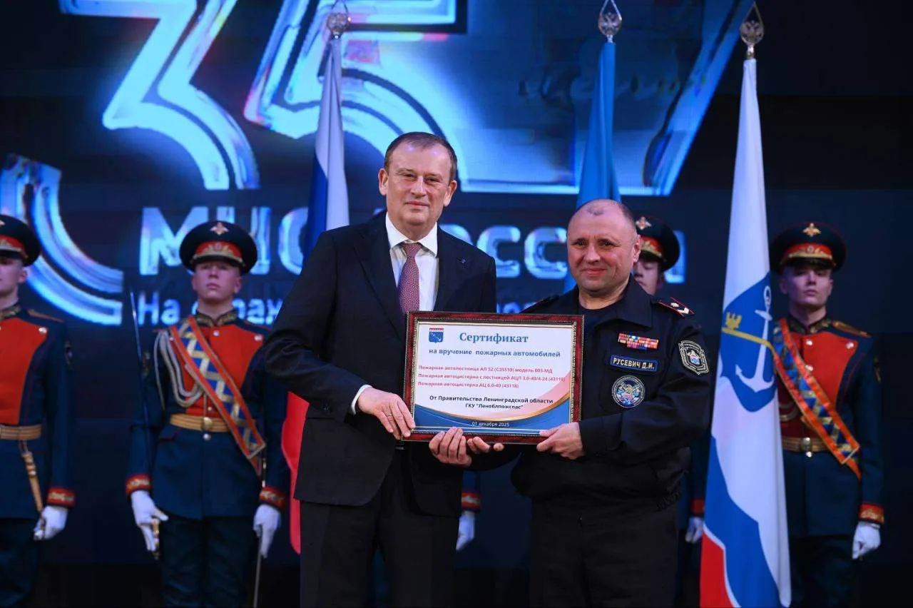 На встрече с личным составом МЧС ленинградского гарнизона вручили ведомственные и региональные награды отличившимся сотрудникам. Подразделениям спасателей — сертификаты на 7 единиц спецтехники. Главное пожелание — дежурств без сигнала тревоги.