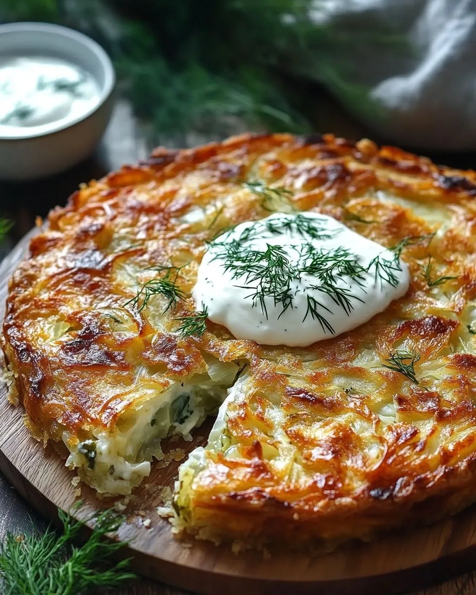 Быстрый пирог или хрустящая капустная запеканка с укропным соусом