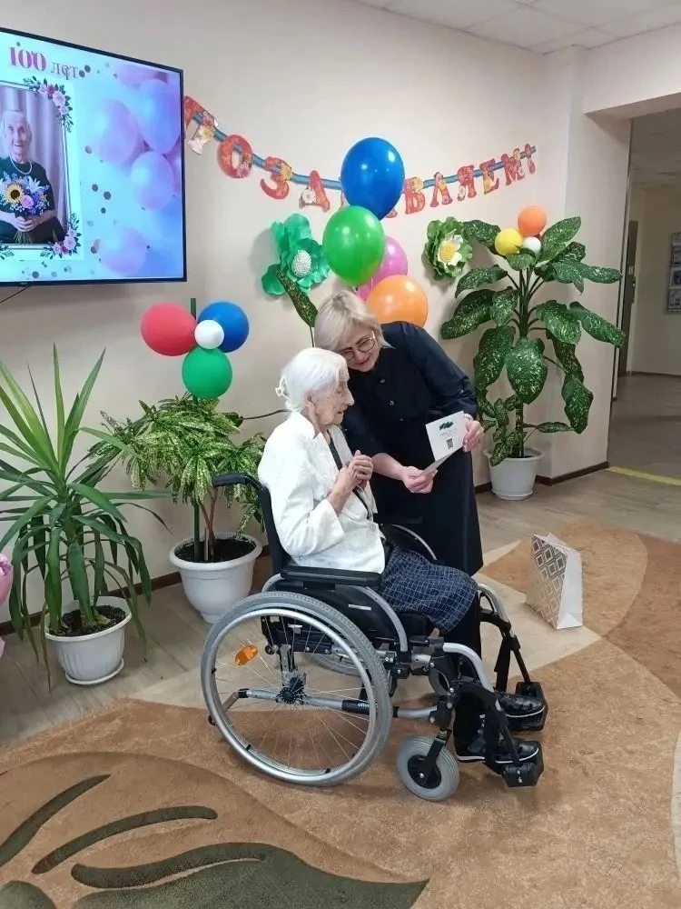 🎉 В Нижневартовском пансионате круглосуточного ухода особенное, по‑настоящему знаменательное событие: свой 100‑летний юбилей отмечает Николаева Клавдия Андреевна.