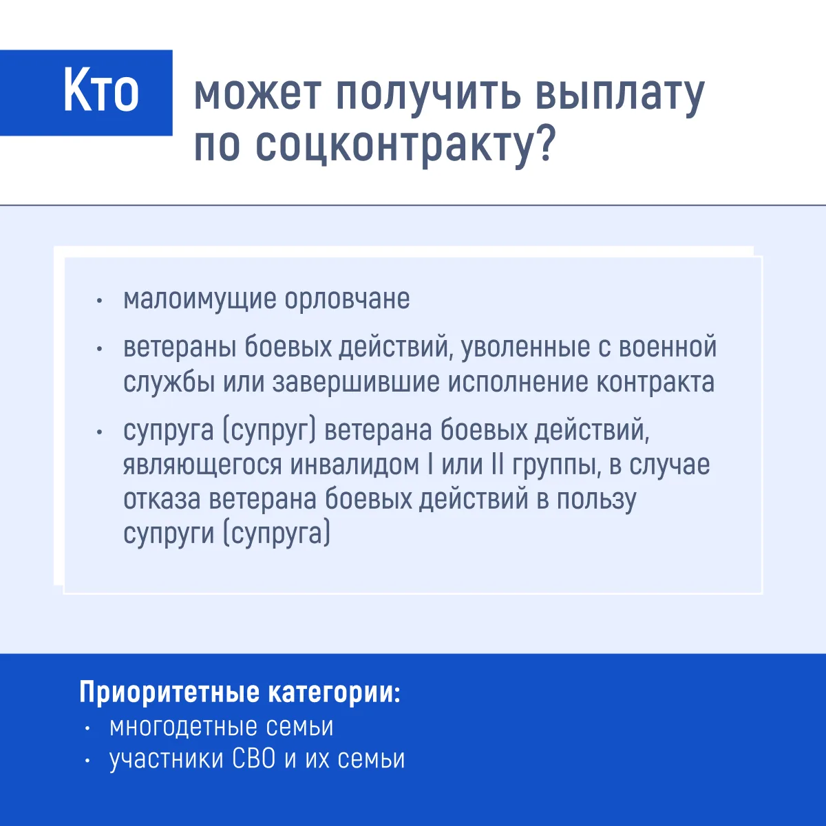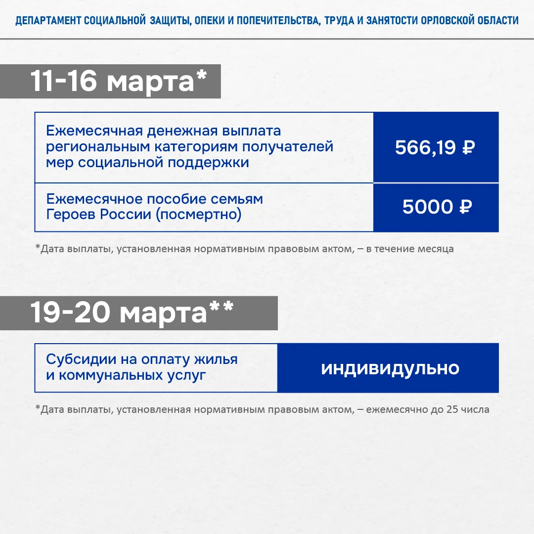 Оформить ежемесячную меру поддержки могут граждане, проживающие на территории Орловской области и относящиеся к следующим категориям: