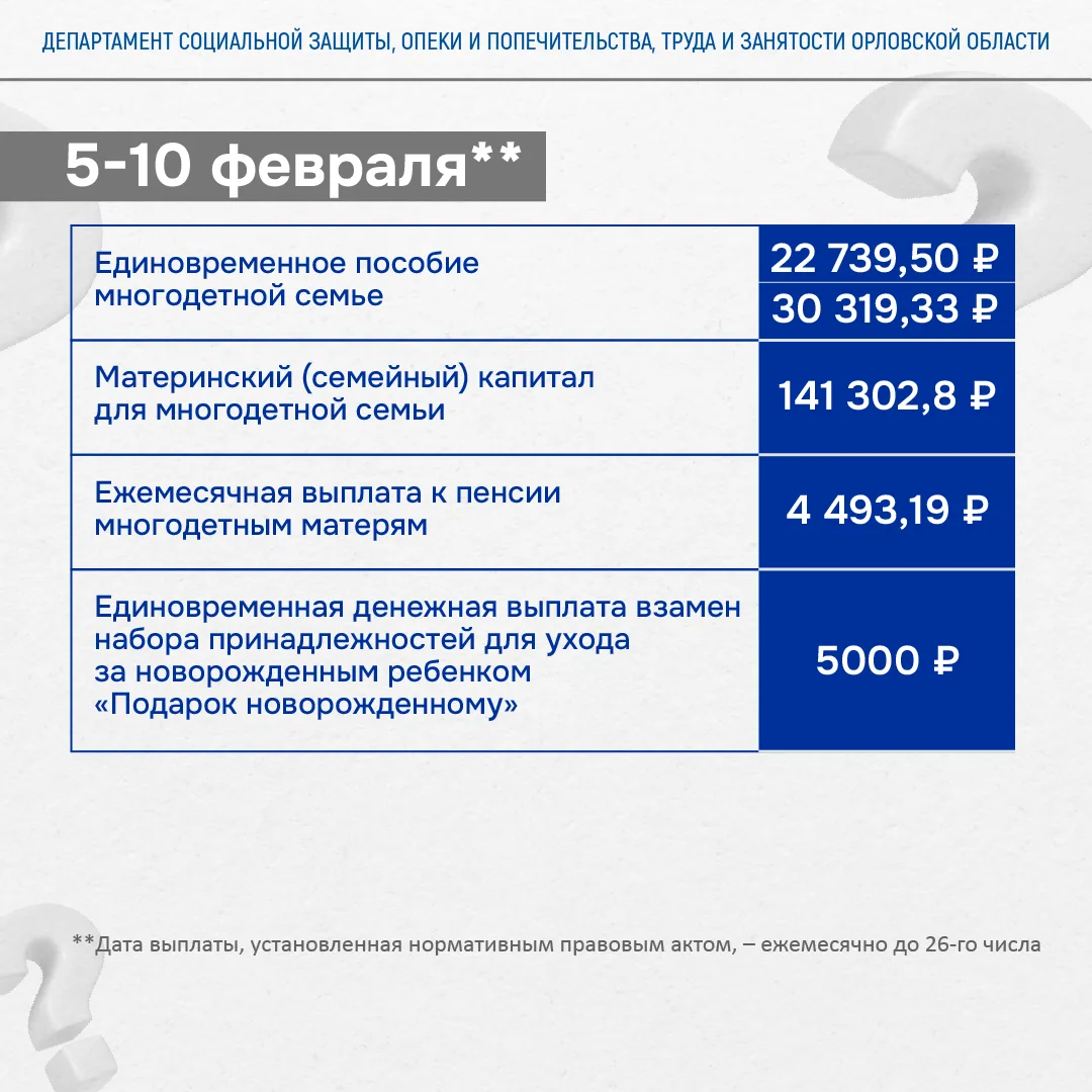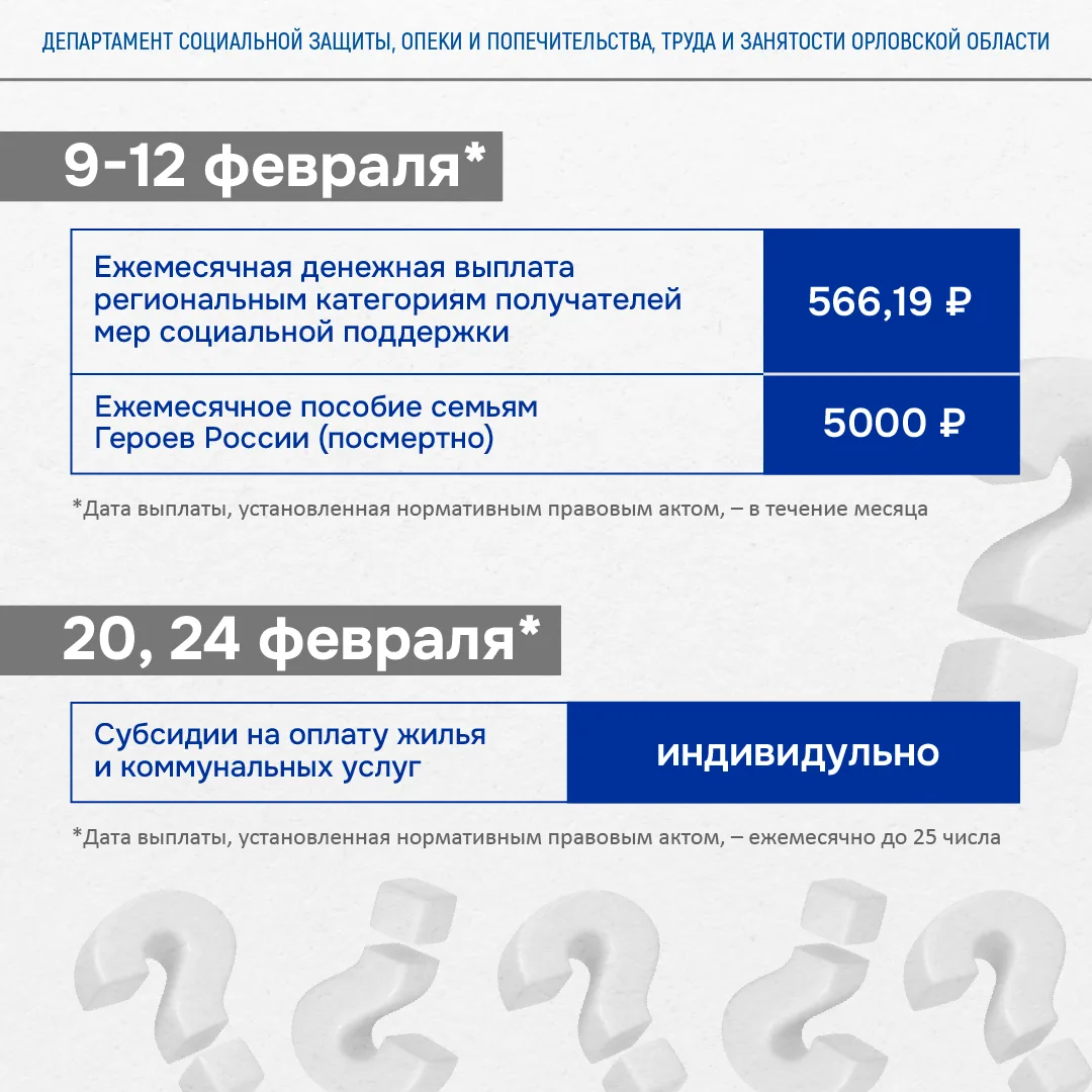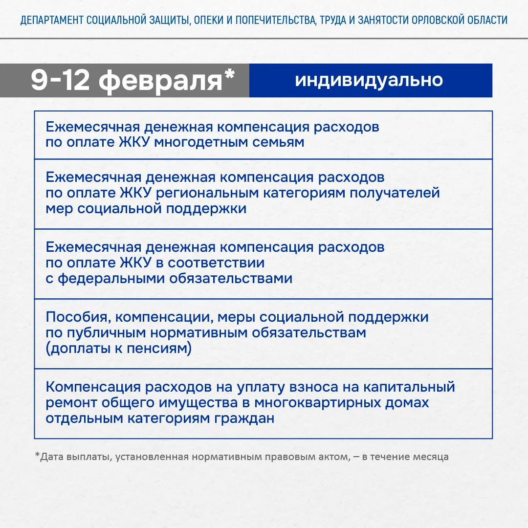 ❗График выплат на февраль 2026 года.