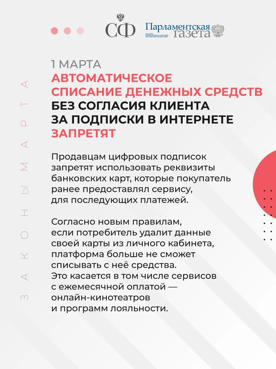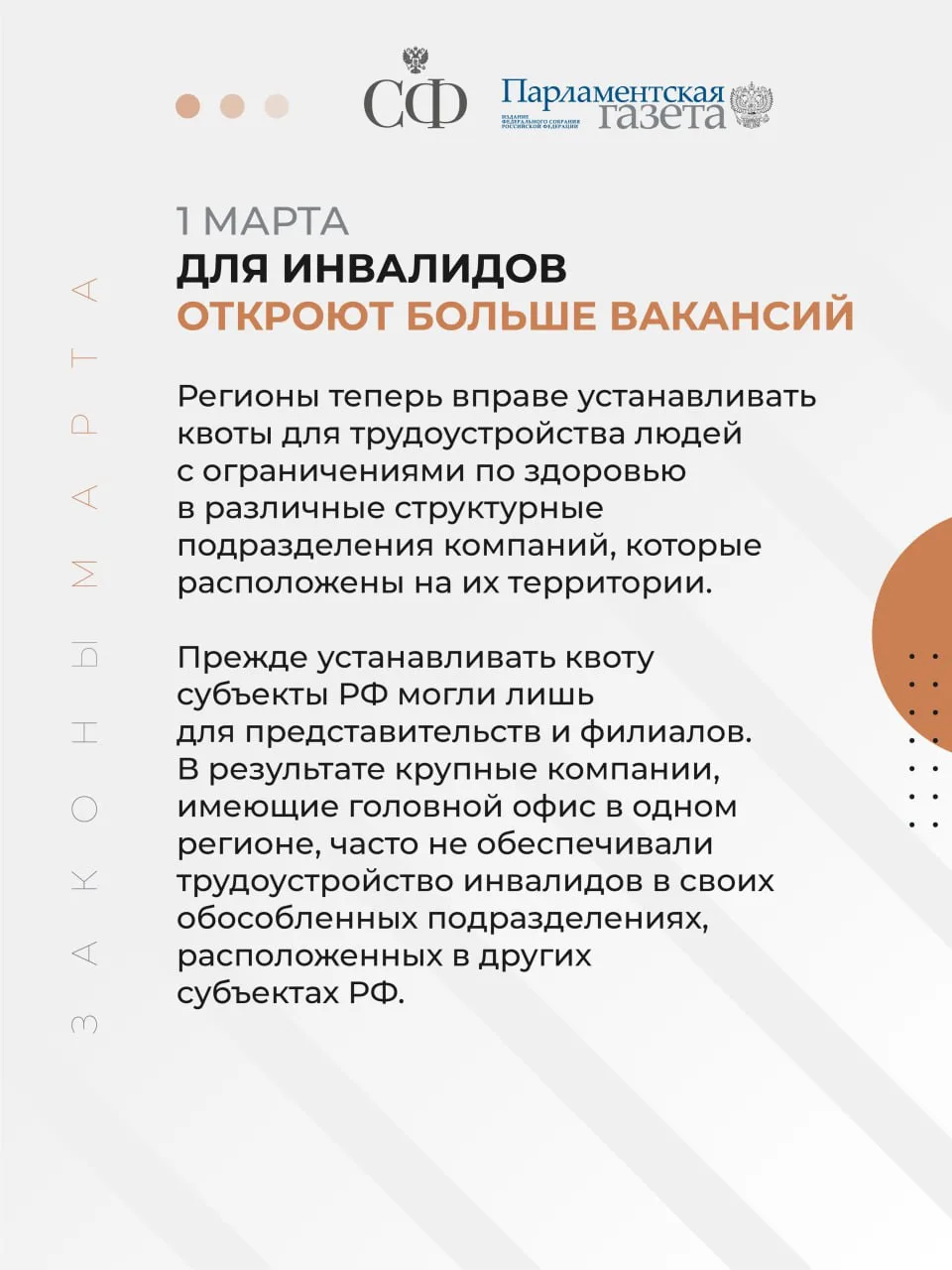 📍 Законы, вступающие в силу в марте - в карточках Совета Федерации и «Парламентской газеты»