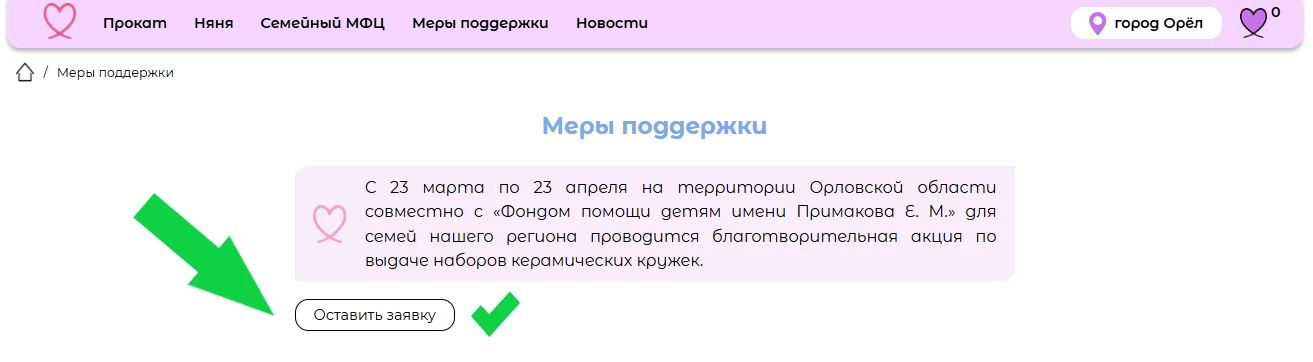 Для этого необходимо обратиться в центр социального обслуживания по месту жительства или оставить заявку на семейном портале «Область заботы» в разделе «Меры поддержки».