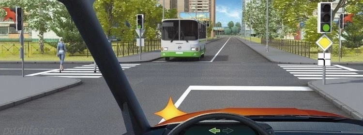 Вы намерены продолжить движение прямо. При желтом мигающем сигнале светофора следует: