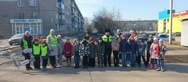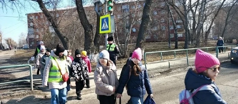 Сотрудники Госавтоинспекции Новокузнецка в рамках акции «Каникулы» совместно с родителями и педагогами школы №49 вышли к регулируемому пешеходному переходу, чтобы повторить алгоритм перехода проезжей части с первоклассниками.