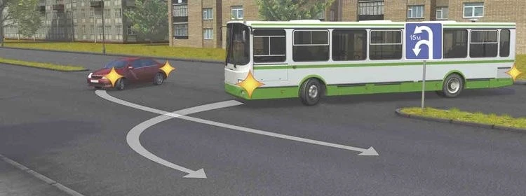 2. Уступите дорогу легковому автомобилю, осуществляющему разворот.