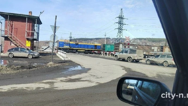 «Встал на дороге и качает воздух в вагоны»: новокузнецким водителям пришлось простоять 40 минут возле переезда