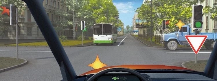 2. Уступить дорогу только грузовому автомобилю с включенным проблесковым маячком.
