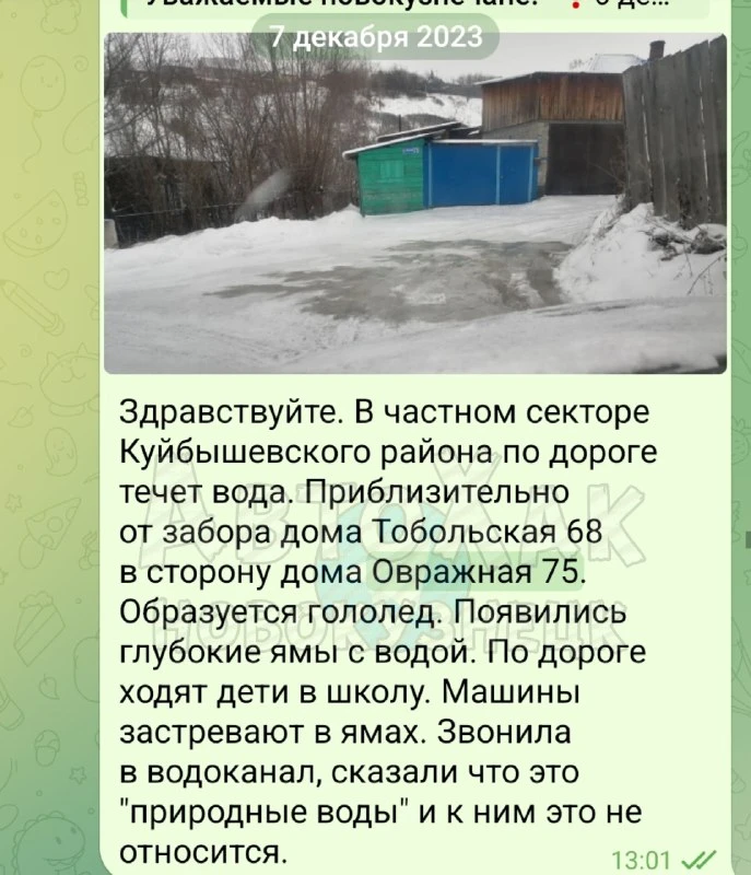 Данная дорога является единственным проездом для людей, проживающих в конце улицы. В тг канале специалисты администрации предложили подождать решение, а не устранения проблемы до 24 февраля. Но сегодня, 20 февраля уже опасно ездить, ходить с каждым днем наледь и гора становится всё больше. Данная проблема находится рядом с домом Овражная 75