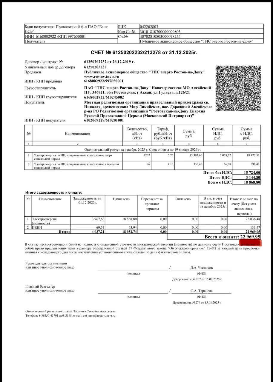 Расчётный счёт храма: