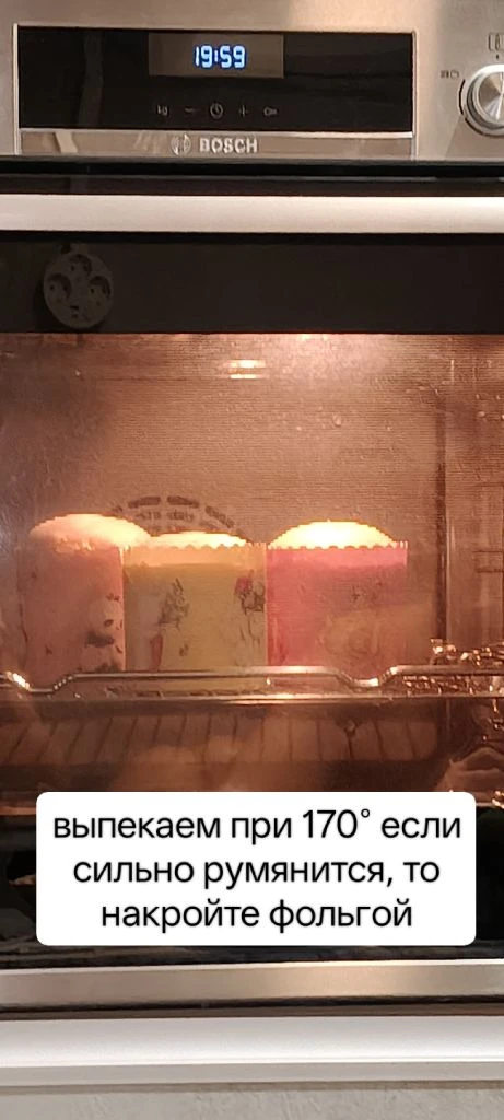 *Если куличи подходили в тепле, но не в духовке, то ставим в горячую духовку. **Если в духовке подходили, то оставляем их там и включаем духовку.